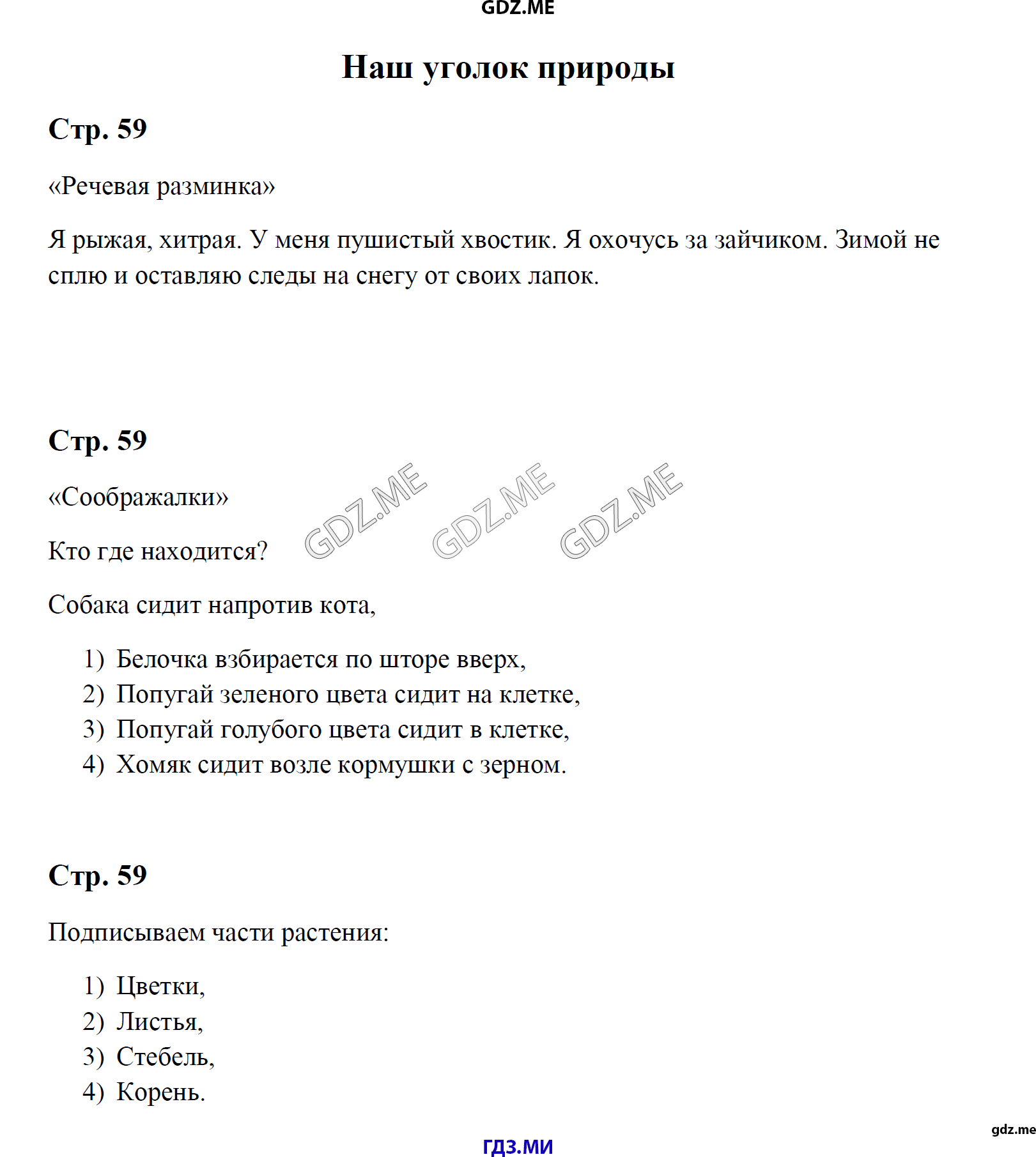 ГДЗ по окружающему миру 1 класс Виноградова рабочая тетрадь. Ответ на Страница номер 59 (Страницы тетради)