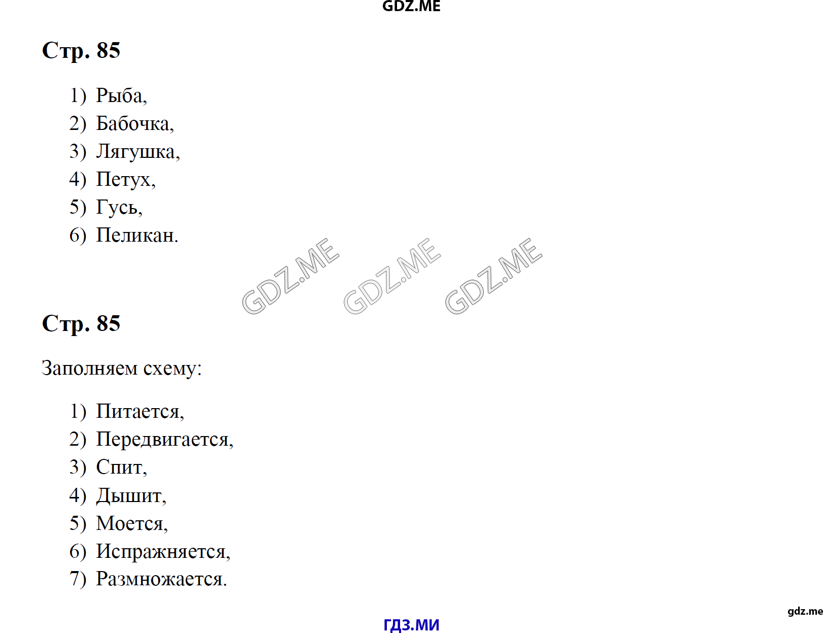 ГДЗ по окружающему миру 1 класс Виноградова рабочая тетрадь. Ответ на Страница номер 85 (Страницы тетради)