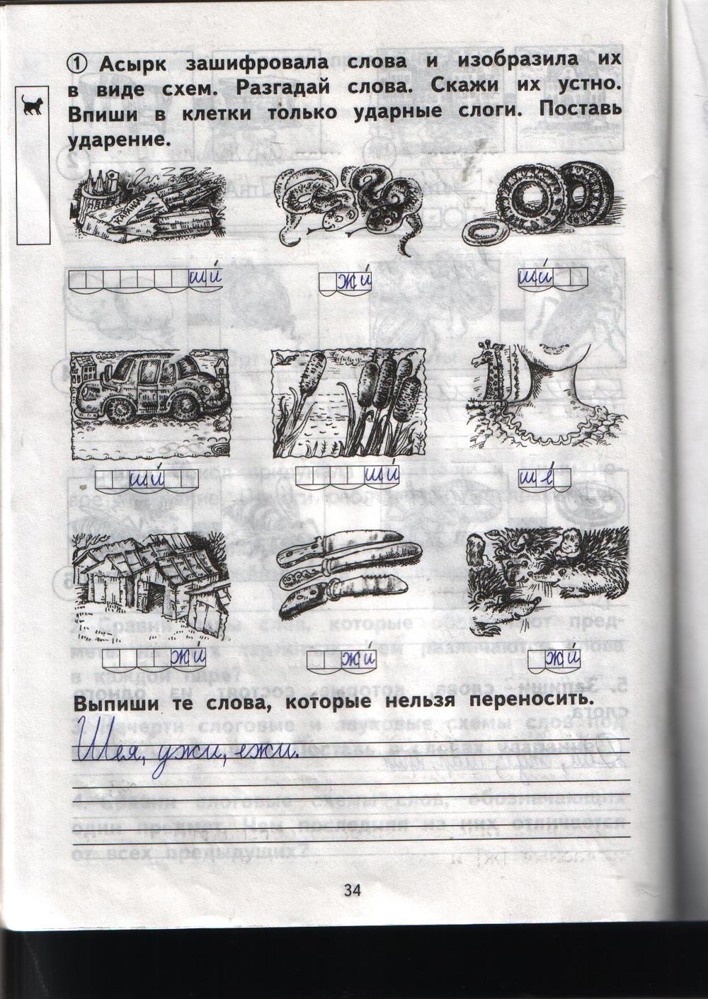 Подробный вариант решения из решебника (ГДЗ): Страница номер 34 по предмету Русский язык, за 1 класс, авторы учебника Гольфман Е.Р. .