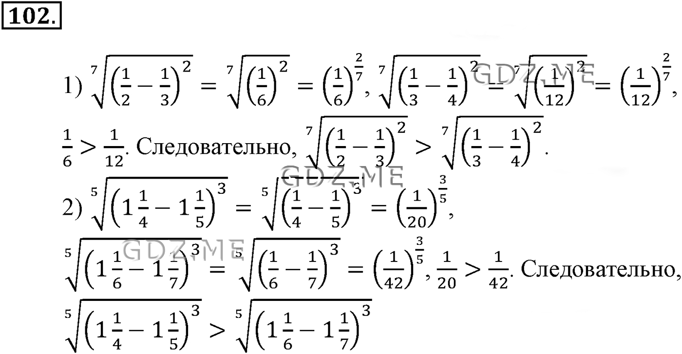 ГДЗ по Алгебре за 10 и 11 класс Алимов, Колягин. Ответ на Задание номер 102 (Глава 1 Степенная функция)