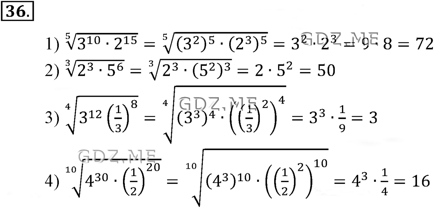 Подробный вариант решения из решебника (ГДЗ): Задание номер 36 (Глава 1 Степенная функция) по предмету Алгебра, за 10 класс, авторы учебника Алимов, Колягин.