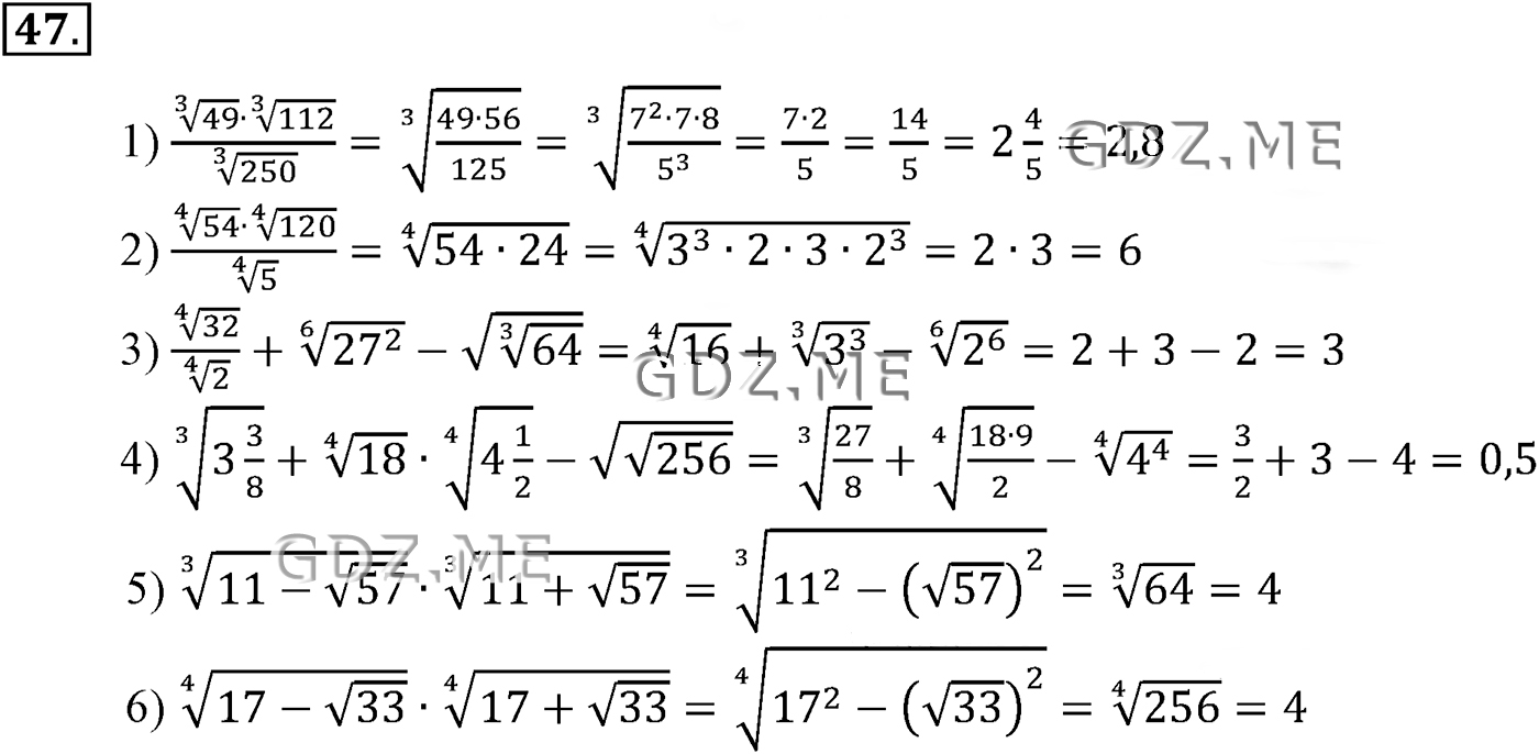 Подробный вариант решения из решебника (ГДЗ): Задание номер 47 (Глава 1 Степенная функция) по предмету Алгебра, за 10 класс, авторы учебника Алимов, Колягин.