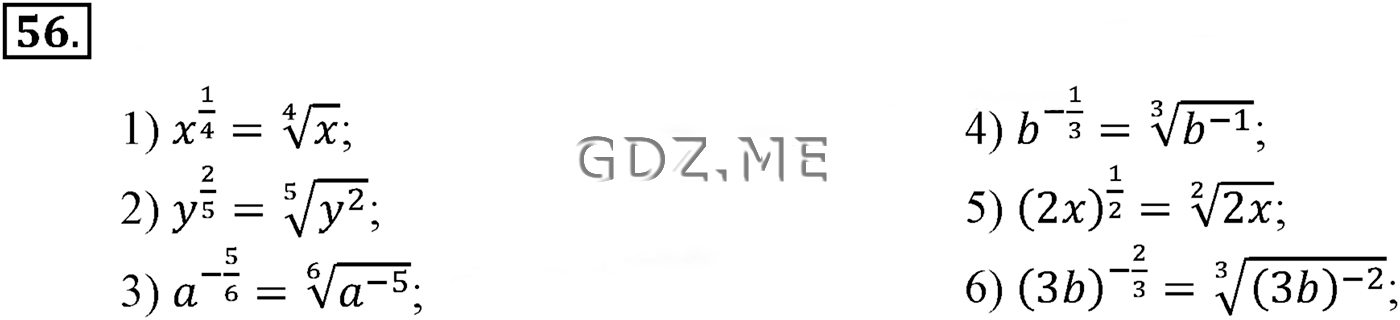 ГДЗ по Алгебре за 10 и 11 класс Алимов, Колягин. Ответ на Задание номер 56 (Глава 1 Степенная функция)