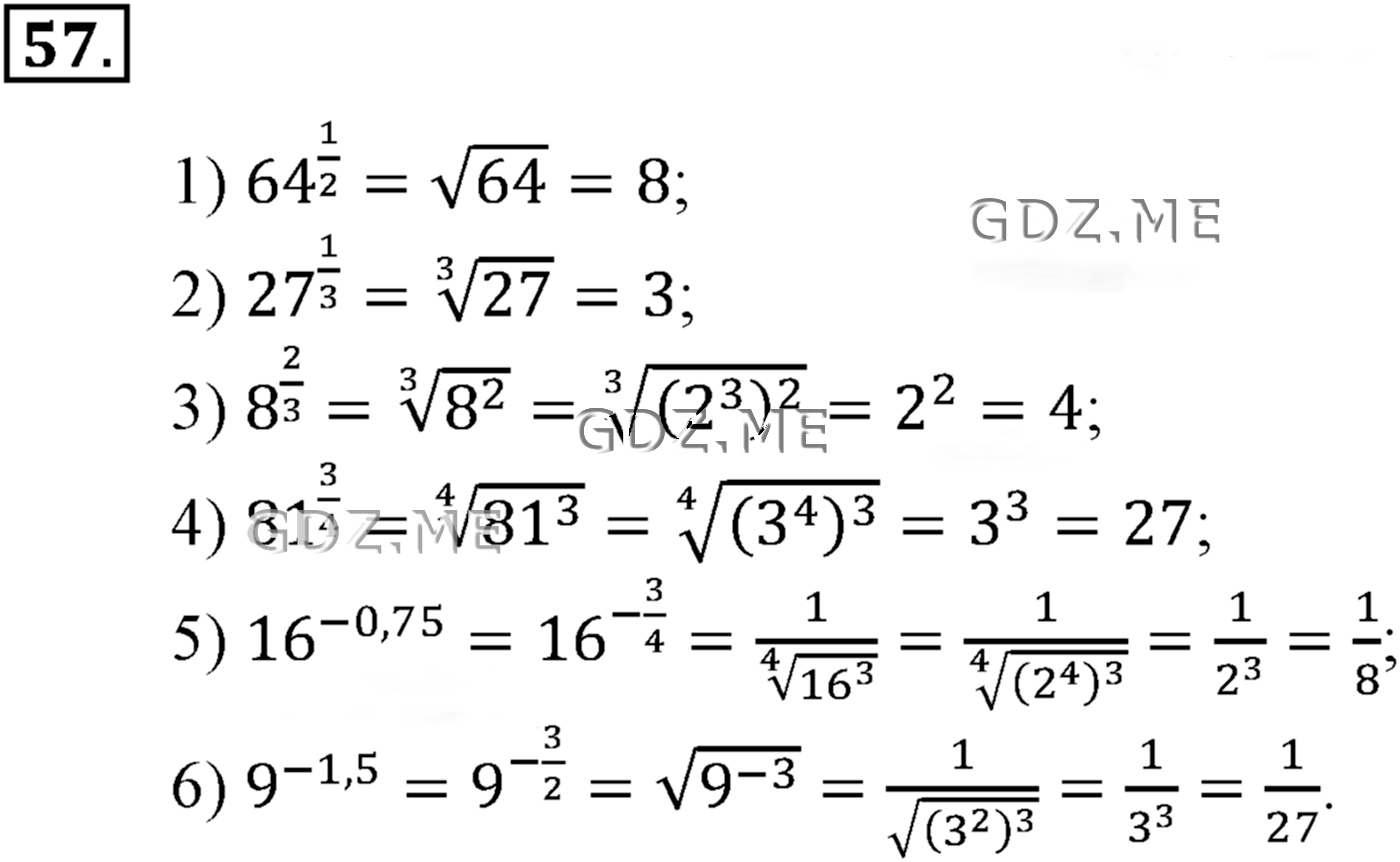 ГДЗ по Алгебре за 10 и 11 класс Алимов, Колягин. Ответ на Задание номер 57 (Глава 1 Степенная функция)