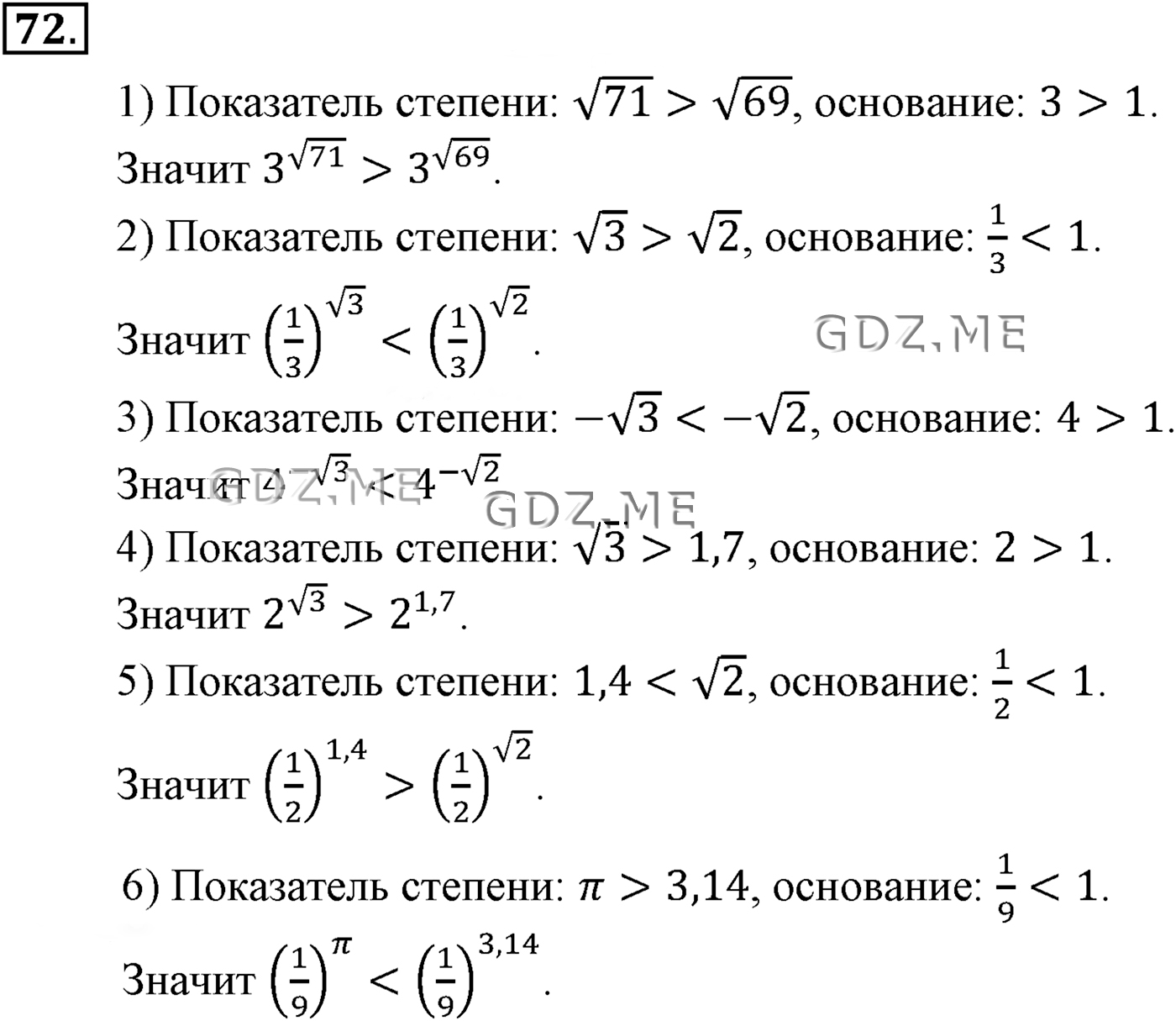 ГДЗ по Алгебре за 10 и 11 класс Алимов, Колягин. Ответ на Задание номер 72 (Глава 1 Степенная функция)