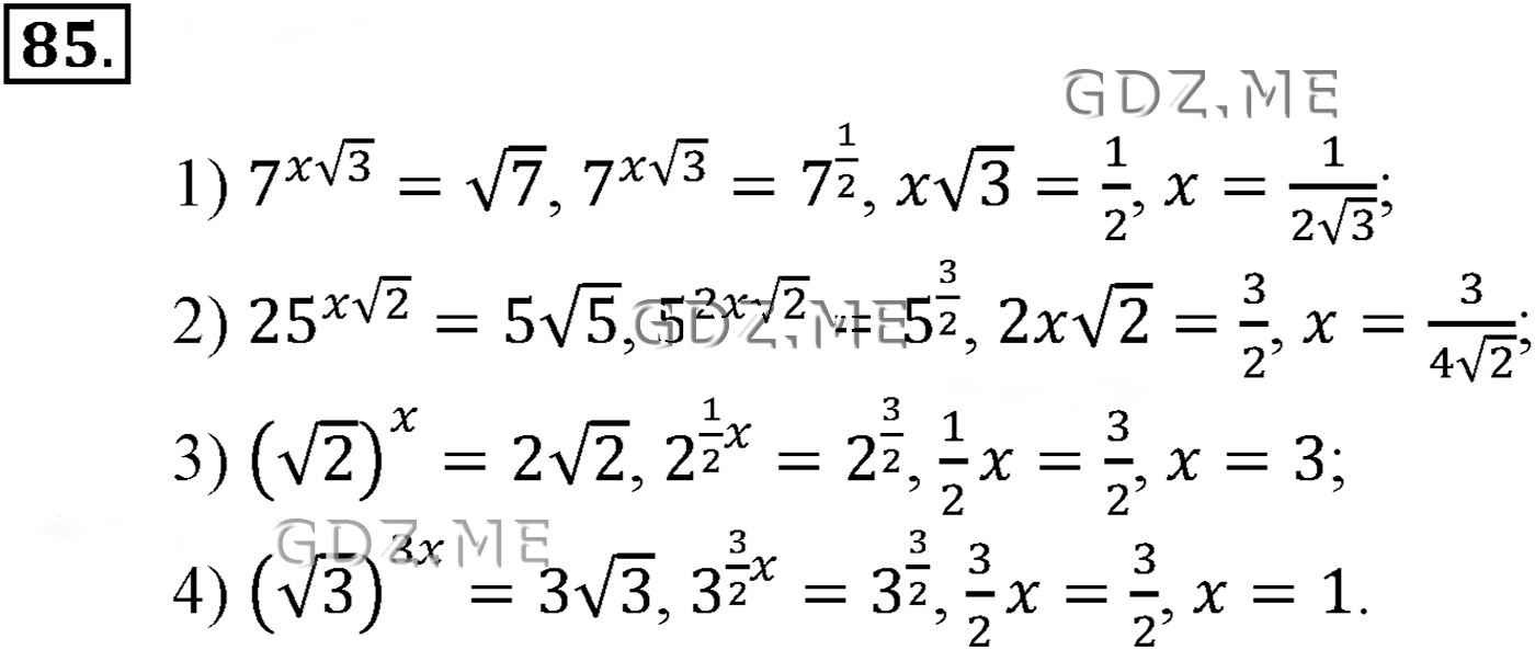 ГДЗ по Алгебре за 10 и 11 класс Алимов, Колягин. Ответ на Задание номер 85 (Глава 1 Степенная функция)