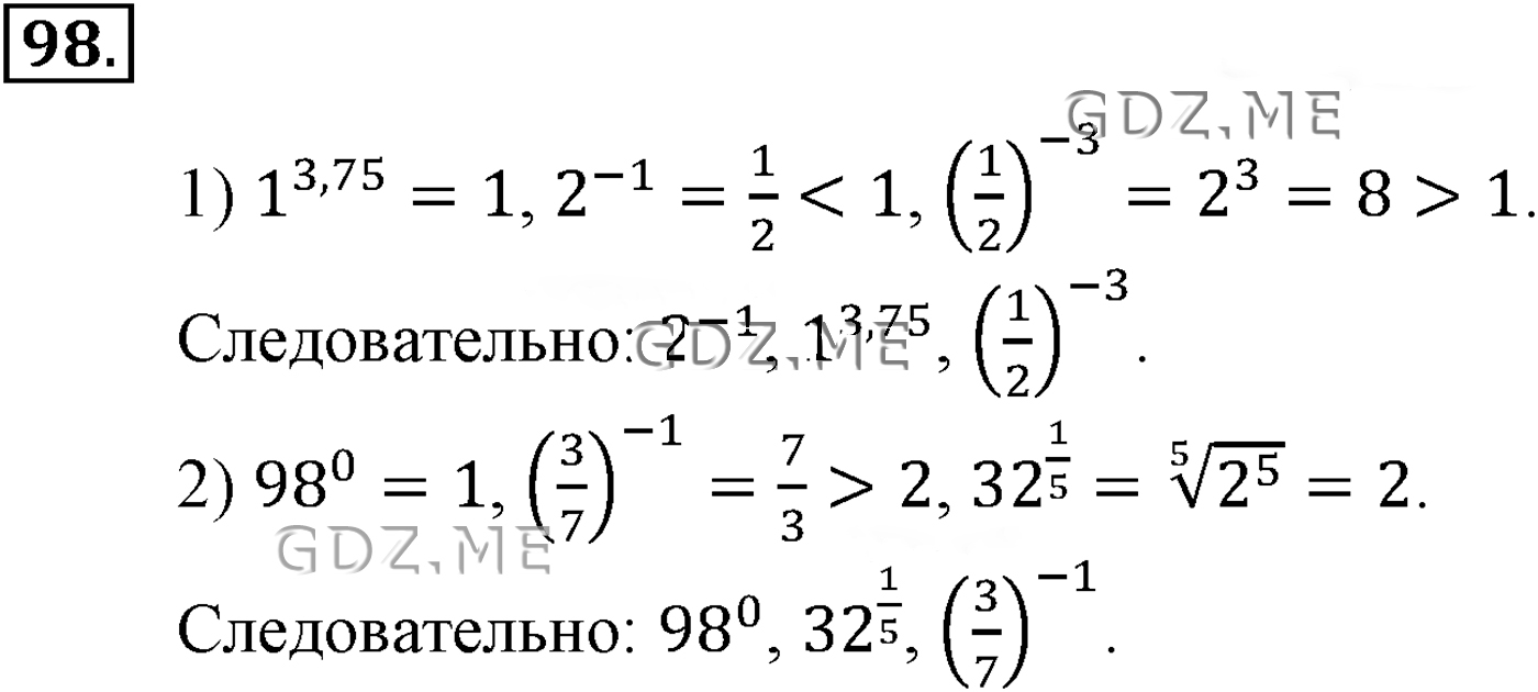 ГДЗ по Алгебре за 10 и 11 класс Алимов, Колягин. Ответ на Задание номер 98 (Глава 1 Степенная функция)