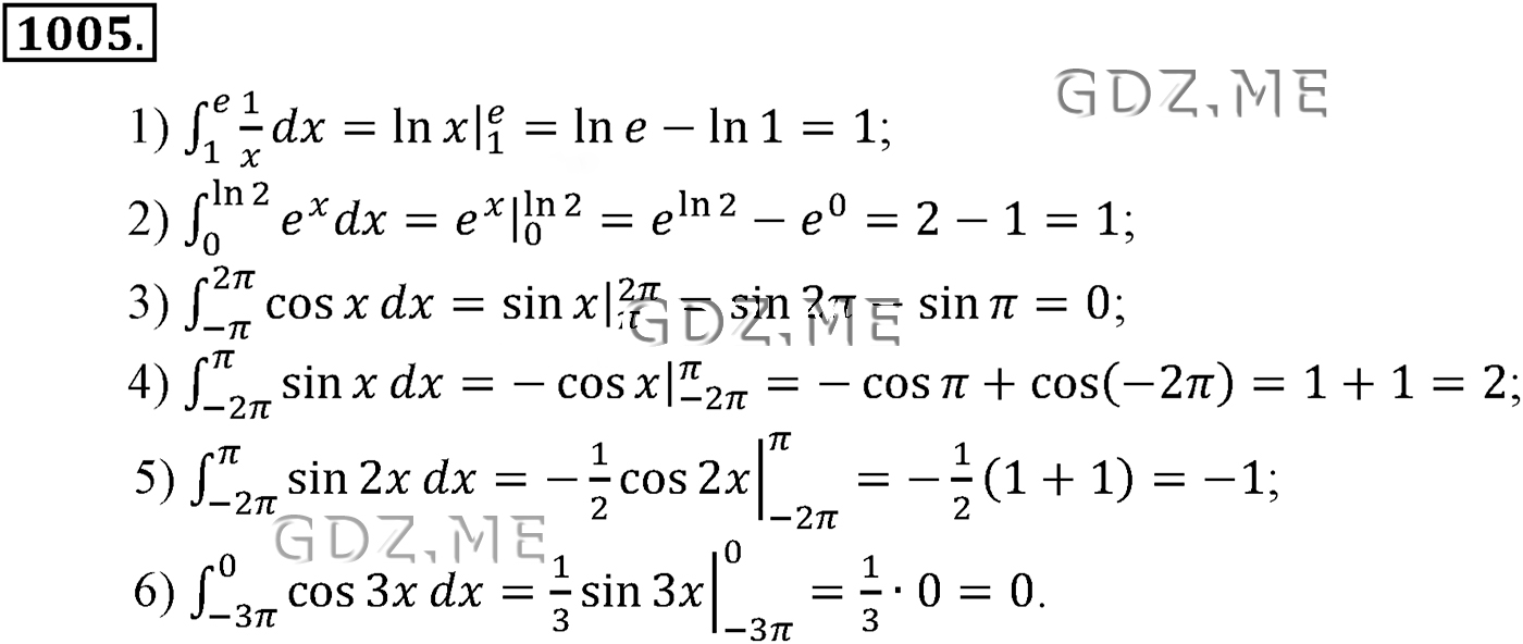 Подробный вариант решения из решебника (ГДЗ): Задание номер 1005 (Глава 10 Интеграл) по предмету Алгебра, за 10 класс, авторы учебника Алимов, Колягин.