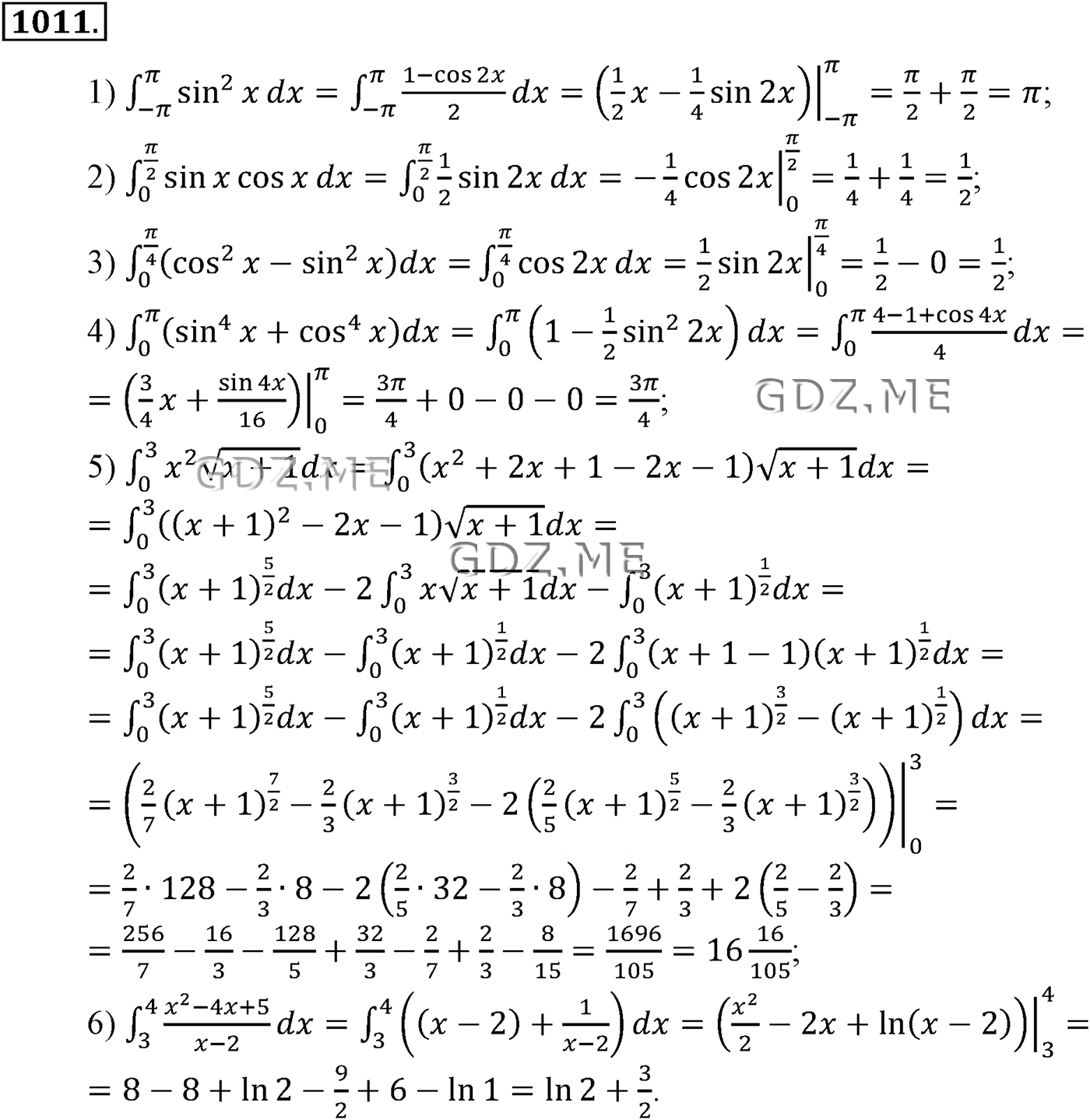 ГДЗ по Алгебре за 10 и 11 класс Алимов, Колягин. Ответ на Задание номер 1011 (Глава 10 Интеграл)