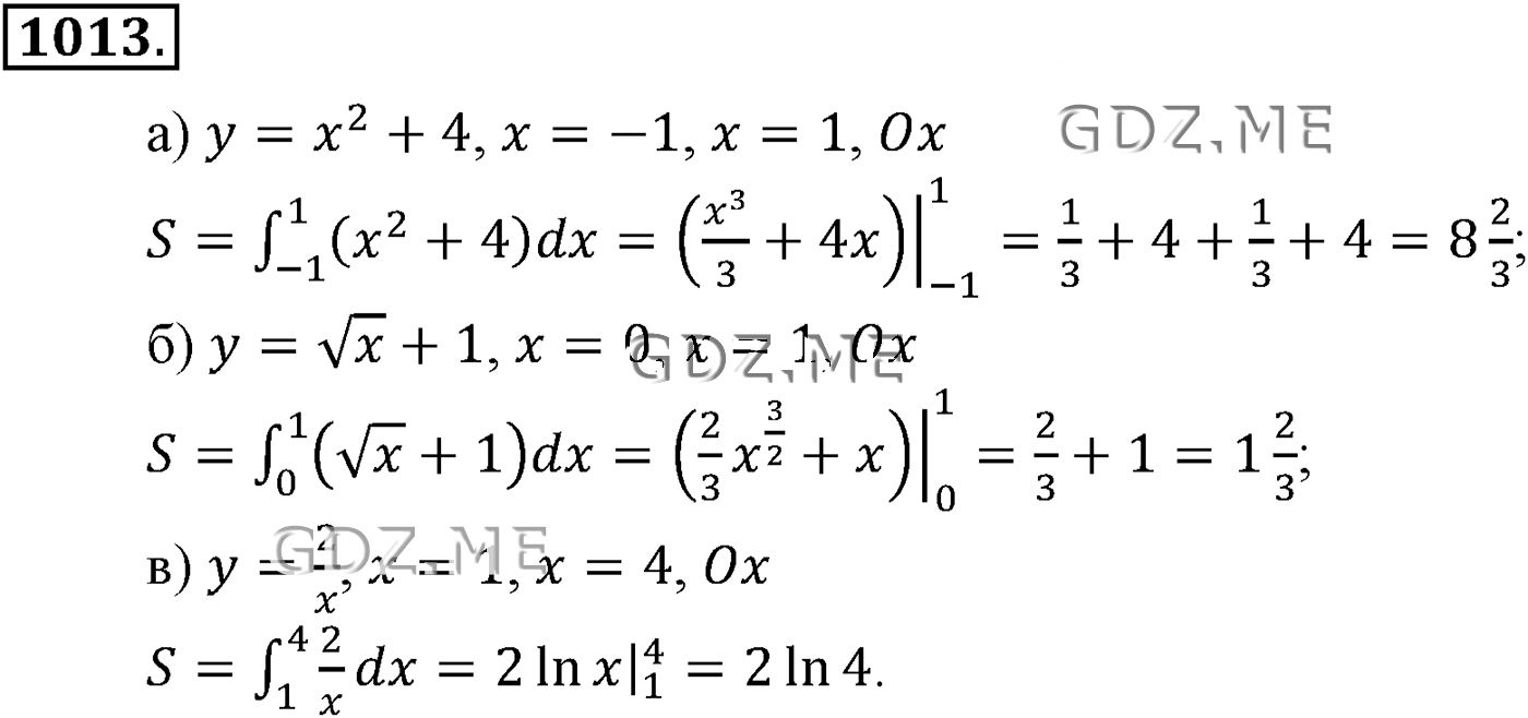 ГДЗ по Алгебре за 10 и 11 класс Алимов, Колягин. Ответ на Задание номер 1013 (Глава 10 Интеграл)