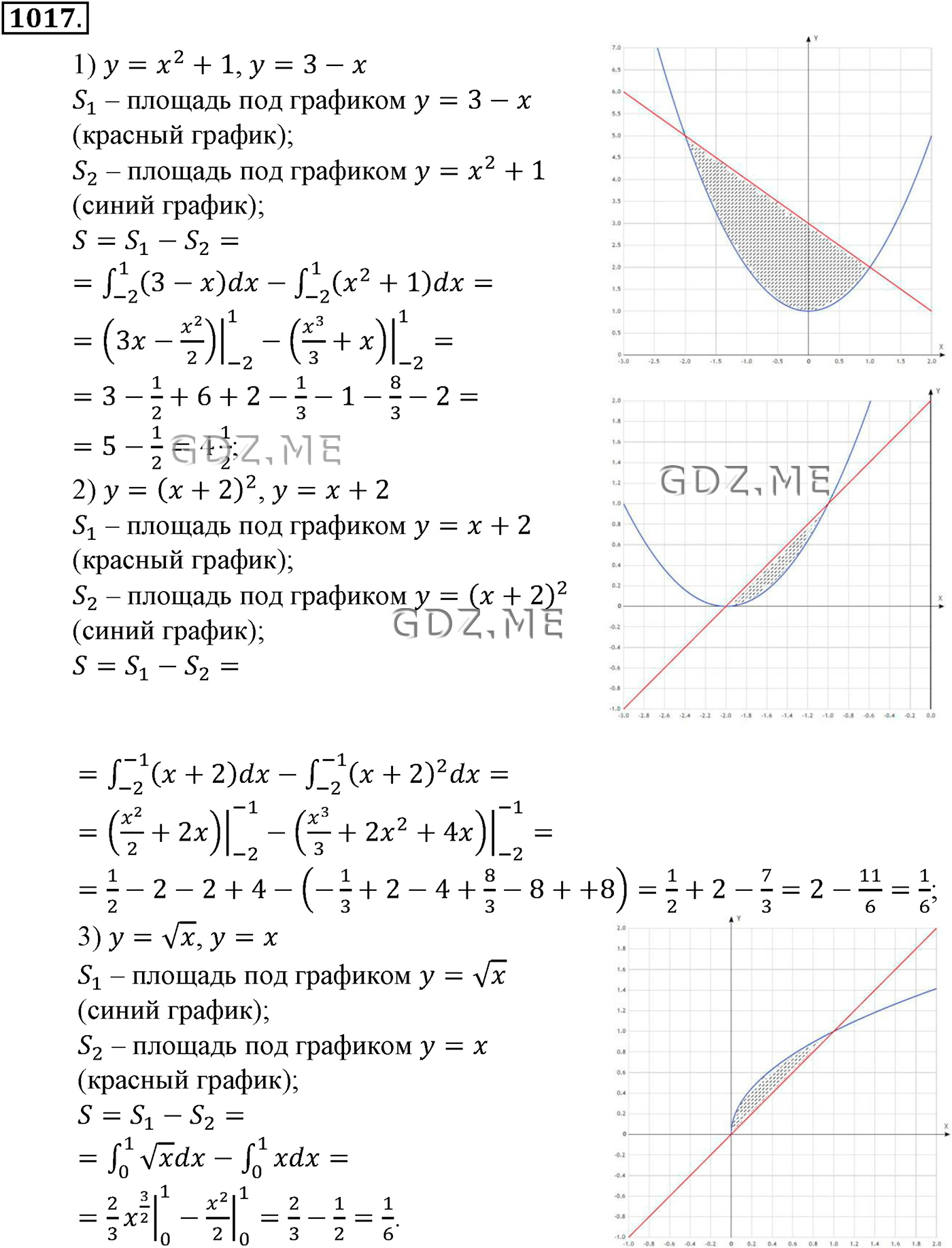 Подробный вариант решения из решебника (ГДЗ): Задание номер 1017 (Глава 10 Интеграл) по предмету Алгебра, за 10 класс, авторы учебника Алимов, Колягин.