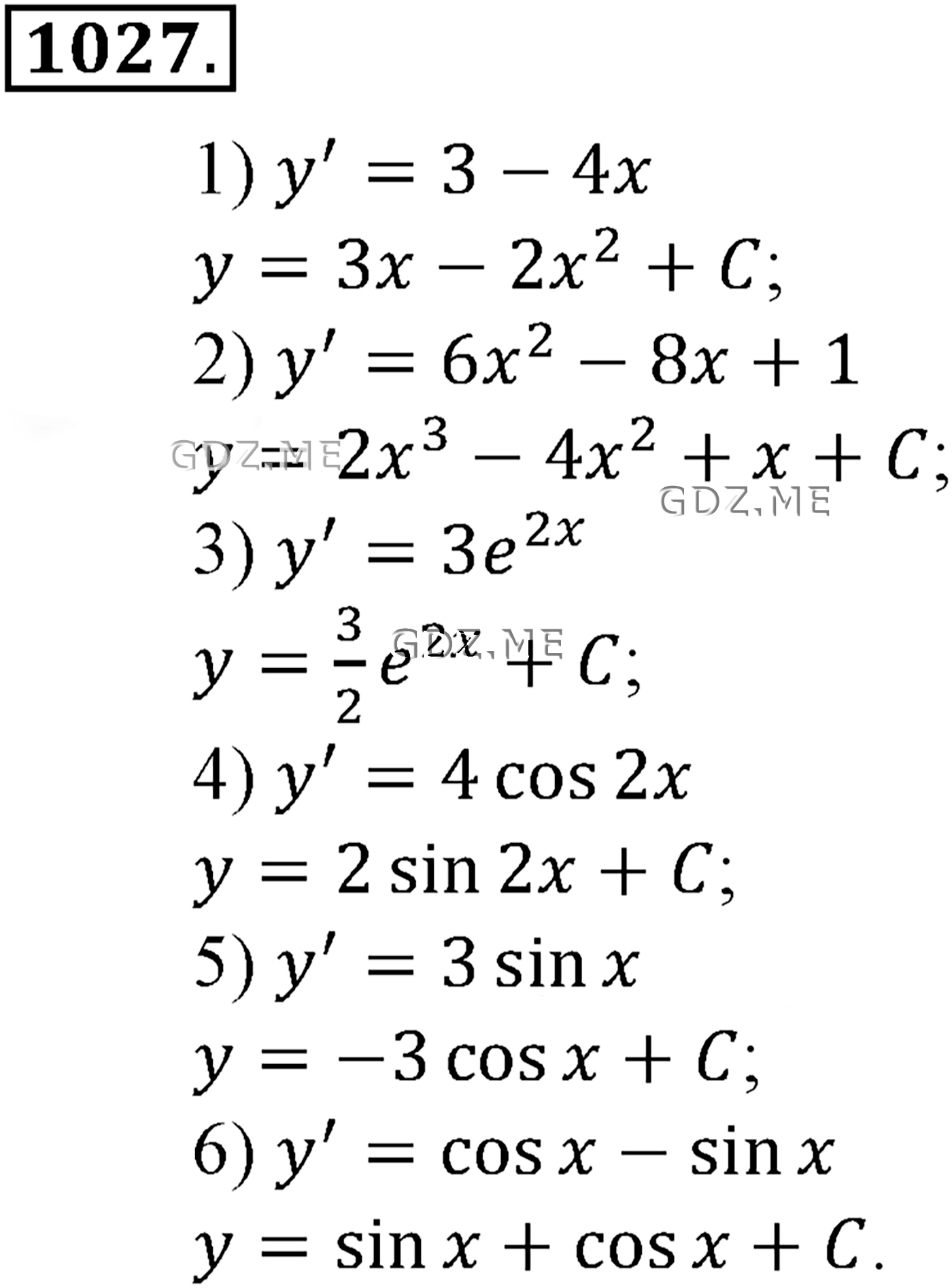 ГДЗ по Алгебре за 10 и 11 класс Алимов, Колягин. Ответ на Задание номер 1027 (Глава 10 Интеграл)