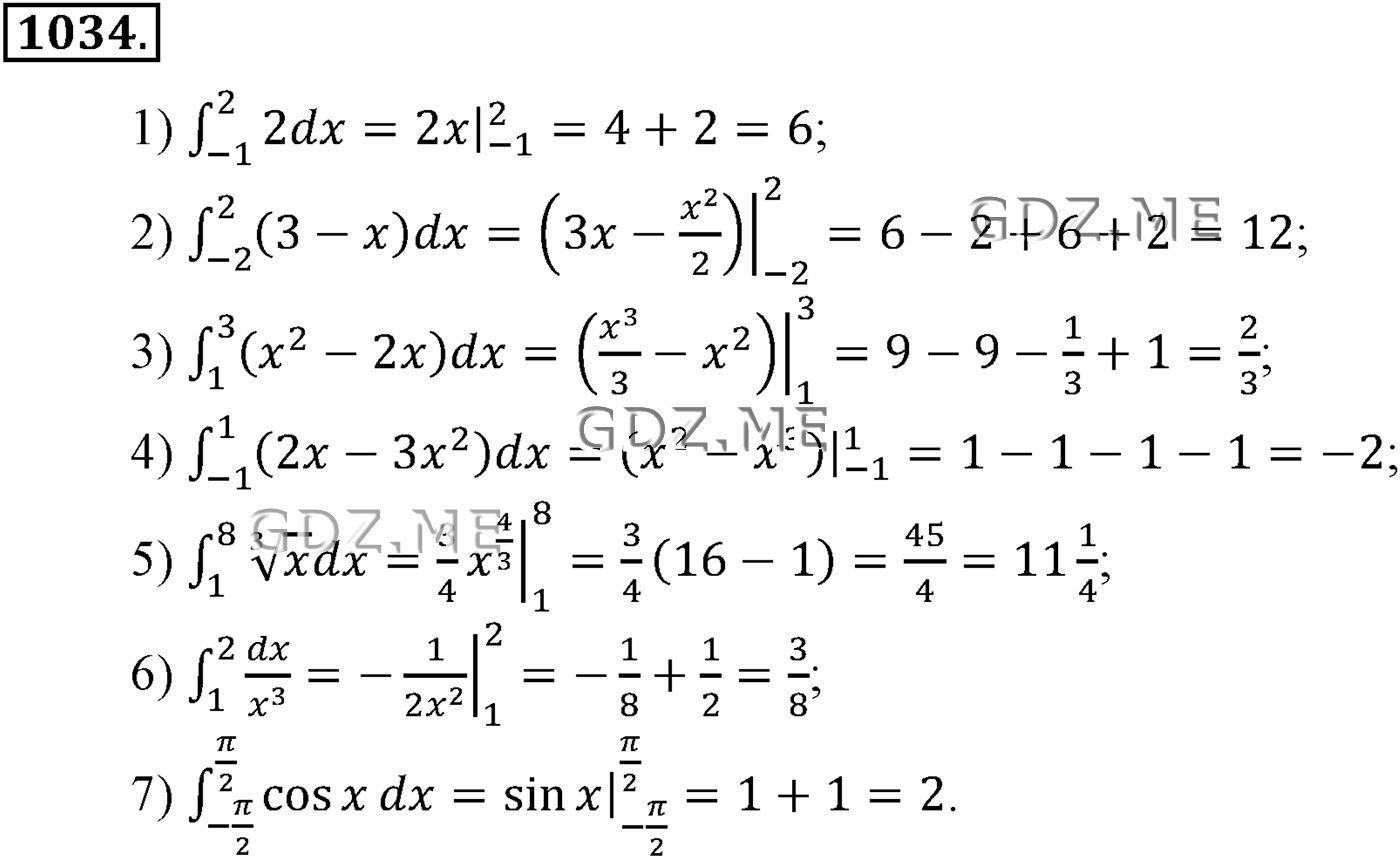 ГДЗ по Алгебре за 10 и 11 класс Алимов, Колягин. Ответ на Задание номер 1034 (Глава 10 Интеграл)
