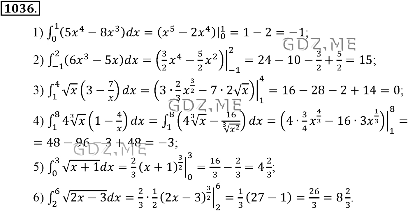 ГДЗ по Алгебре за 10 и 11 класс Алимов, Колягин. Ответ на Задание номер 1036 (Глава 10 Интеграл)
