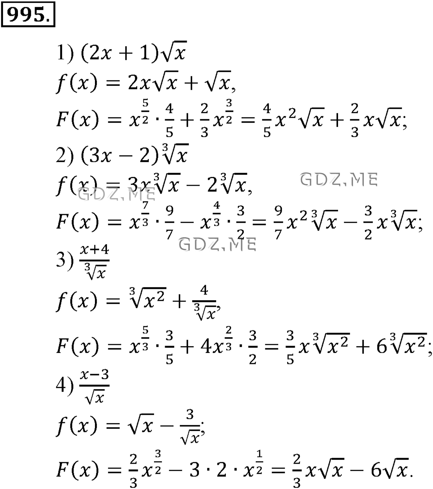 Подробный вариант решения из решебника (ГДЗ): Задание номер 995 (Глава 10 Интеграл) по предмету Алгебра, за 10 класс, авторы учебника Алимов, Колягин.