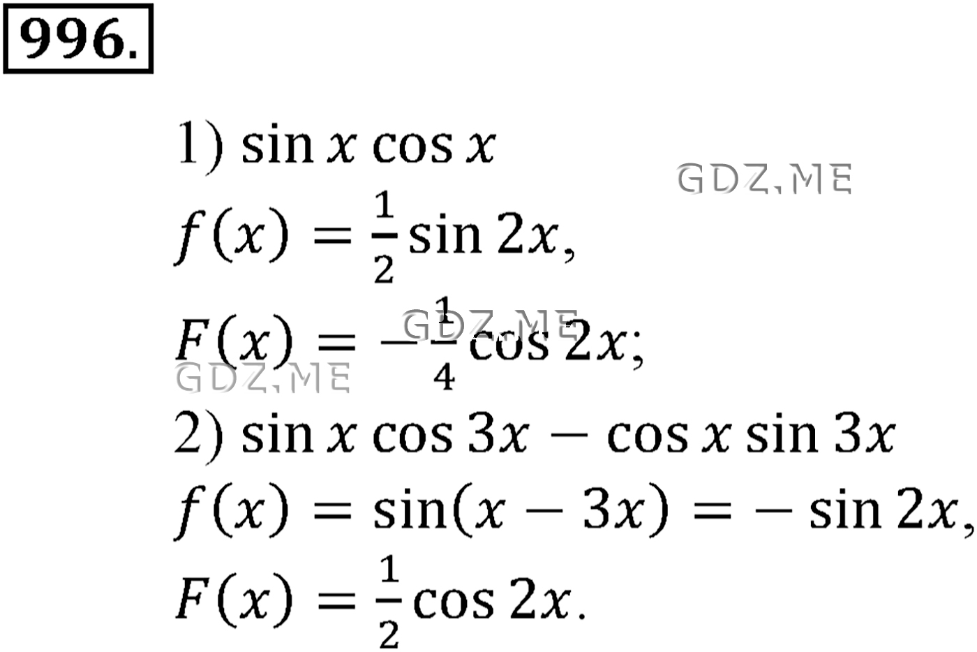 Подробный вариант решения из решебника (ГДЗ): Задание номер 996 (Глава 10 Интеграл) по предмету Алгебра, за 10 класс, авторы учебника Алимов, Колягин.