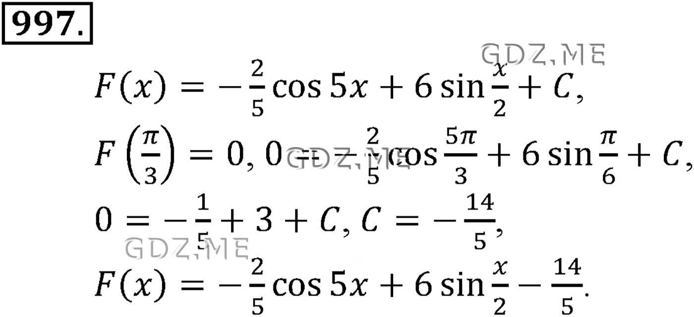 Подробный вариант решения из решебника (ГДЗ): Задание номер 997 (Глава 10 Интеграл) по предмету Алгебра, за 10 класс, авторы учебника Алимов, Колягин.