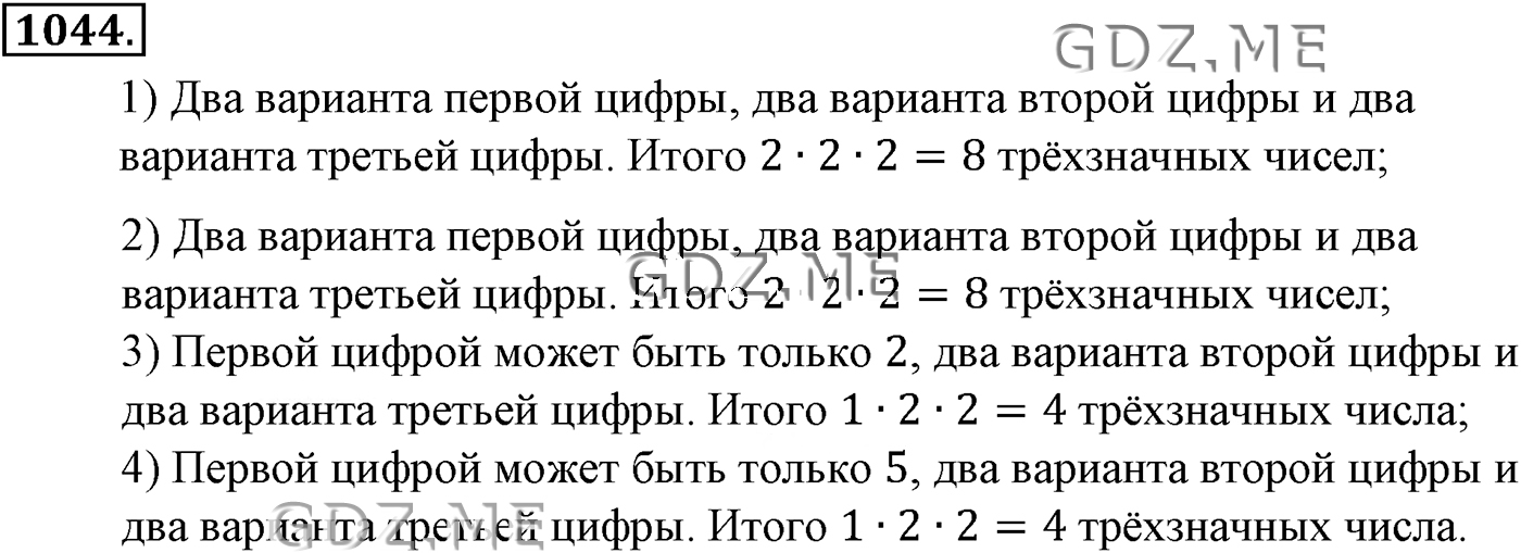 Подробный вариант решения из решебника (ГДЗ): Задание номер 1044 (Глава 11 Комбинаторика) по предмету Алгебра, за 10 класс, авторы учебника Алимов, Колягин.