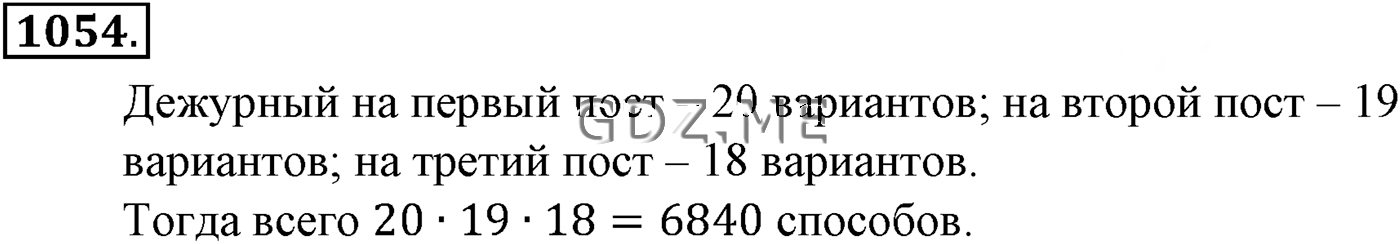 Подробный вариант решения из решебника (ГДЗ): Задание номер 1054 (Глава 11 Комбинаторика) по предмету Алгебра, за 10 класс, авторы учебника Алимов, Колягин.