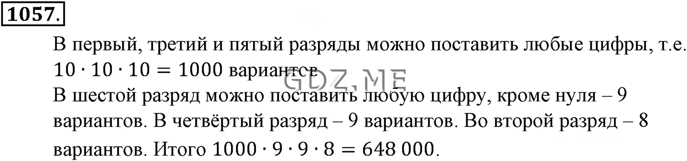 ГДЗ по Алгебре за 10 и 11 класс Алимов, Колягин. Ответ на Задание номер 1057 (Глава 11 Комбинаторика)