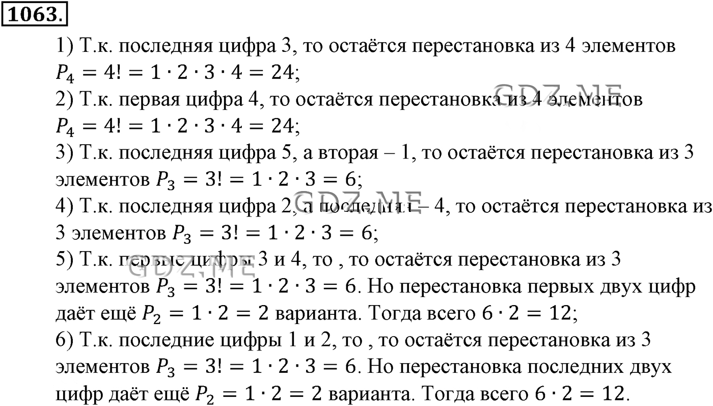 ГДЗ по Алгебре за 10 и 11 класс Алимов, Колягин. Ответ на Задание номер 1063 (Глава 11 Комбинаторика)
