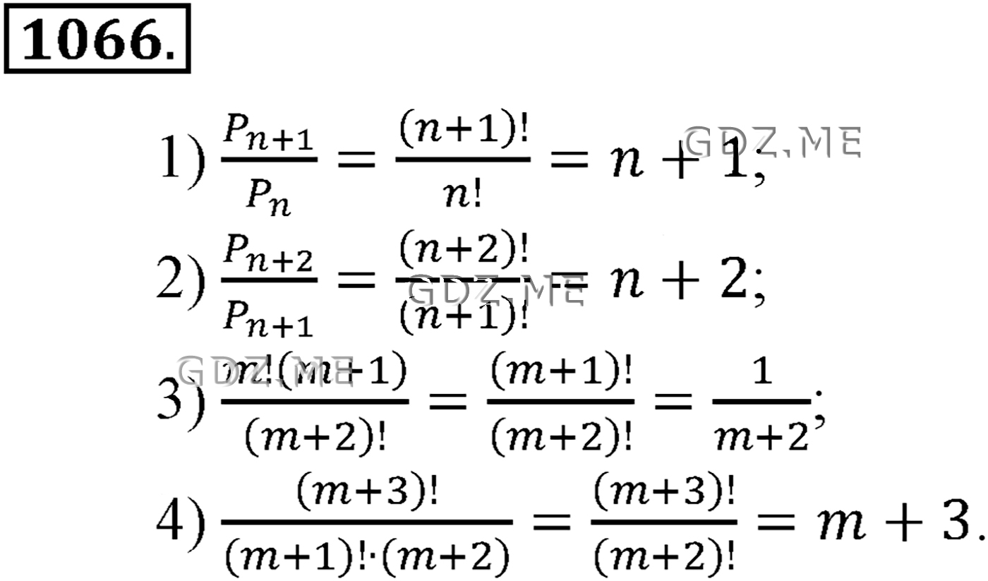 Подробный вариант решения из решебника (ГДЗ): Задание номер 1066 (Глава 11 Комбинаторика) по предмету Алгебра, за 10 класс, авторы учебника Алимов, Колягин.
