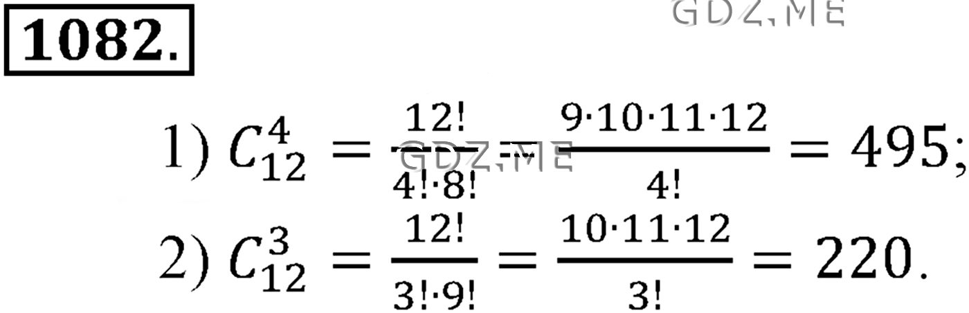 Подробный вариант решения из решебника (ГДЗ): Задание номер 1082 (Глава 11 Комбинаторика) по предмету Алгебра, за 10 класс, авторы учебника Алимов, Колягин.