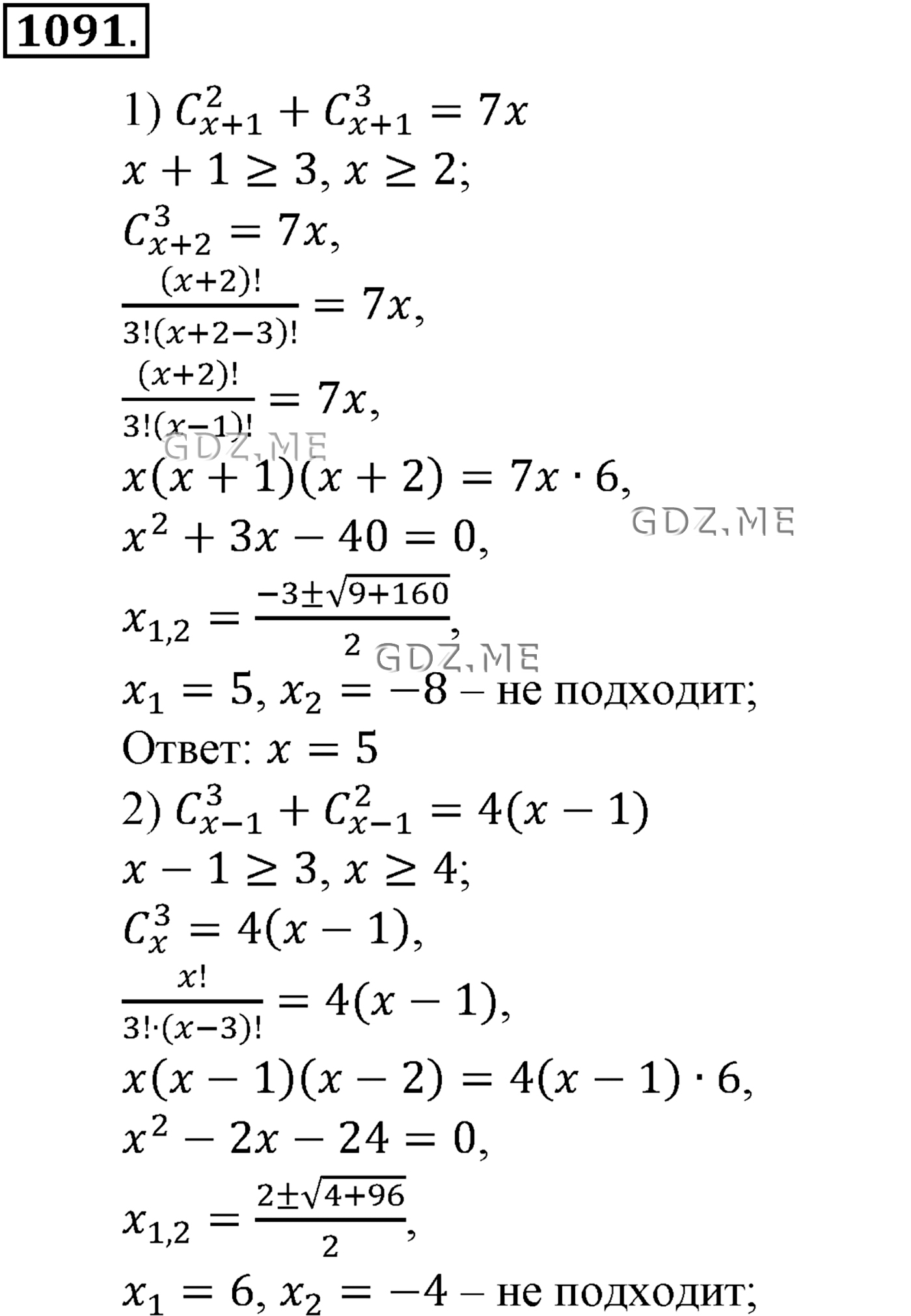 ГДЗ по Алгебре за 10 и 11 класс Алимов, Колягин. Ответ на Задание номер 1091.1 (Глава 11 Комбинаторика)