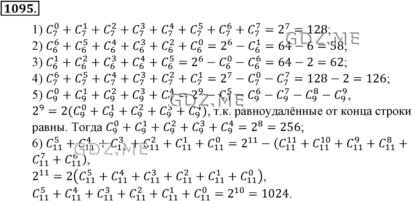ГДЗ по Алгебре за 10 и 11 класс Алимов, Колягин. Ответ на Задание номер 1095 (Глава 11 Комбинаторика)
