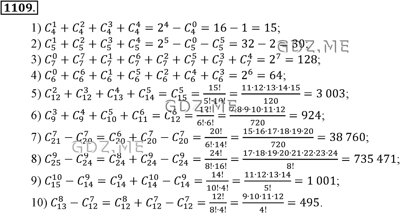 ГДЗ по Алгебре за 10 и 11 класс Алимов, Колягин. Ответ на Задание номер 1109 (Глава 11 Комбинаторика)