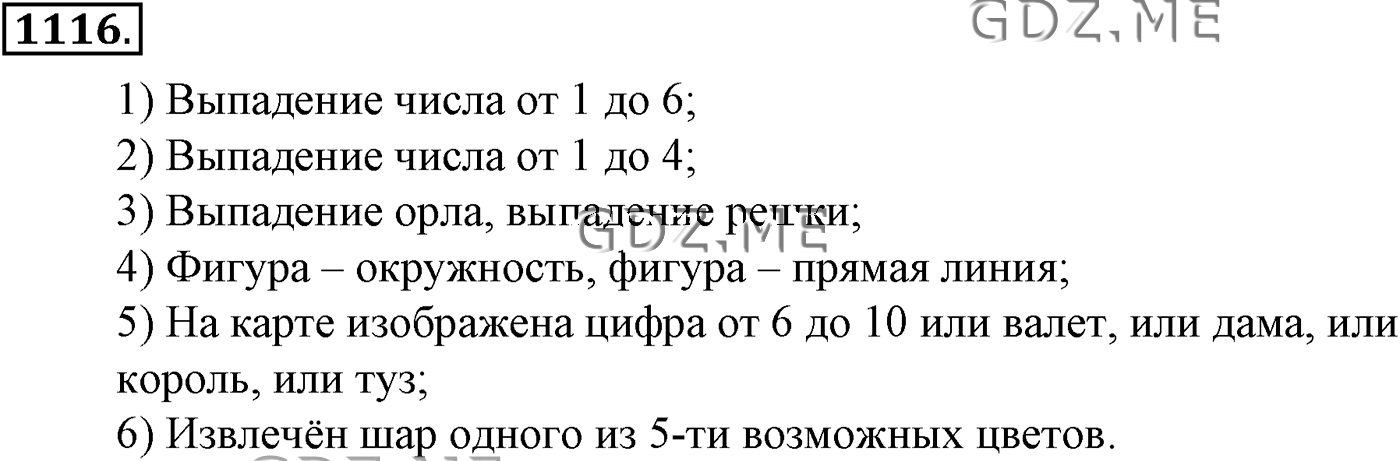 Подробный вариант решения из решебника (ГДЗ): Задание номер 1116 (Глава 12 Элементы теории вероятностей) по предмету Алгебра, за 10 класс, авторы учебника Алимов, Колягин.