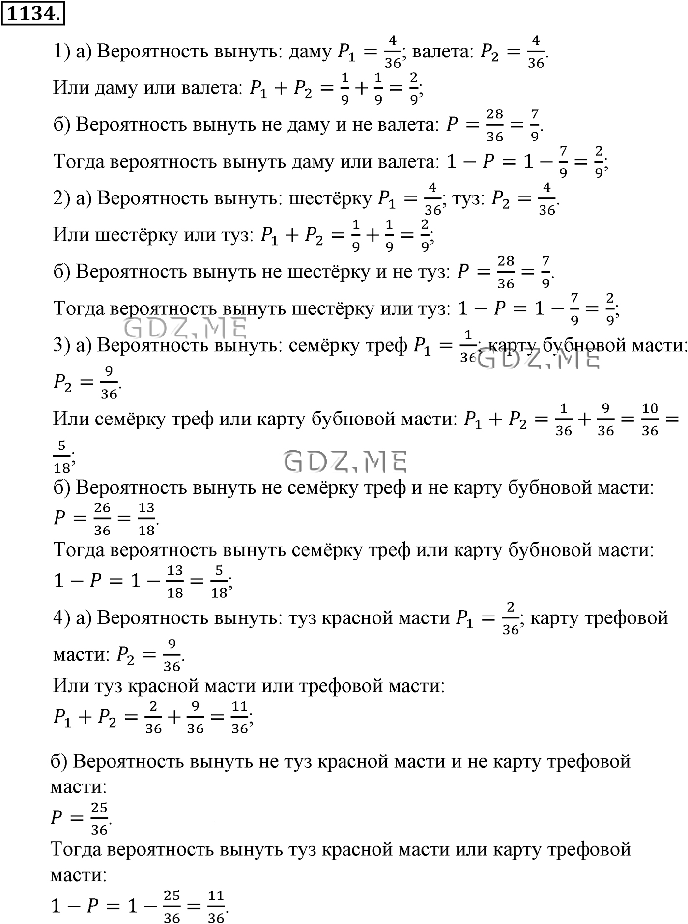 ГДЗ по Алгебре за 10 и 11 класс Алимов, Колягин. Ответ на Задание номер 1134 (Глава 12 Элементы теории вероятностей)