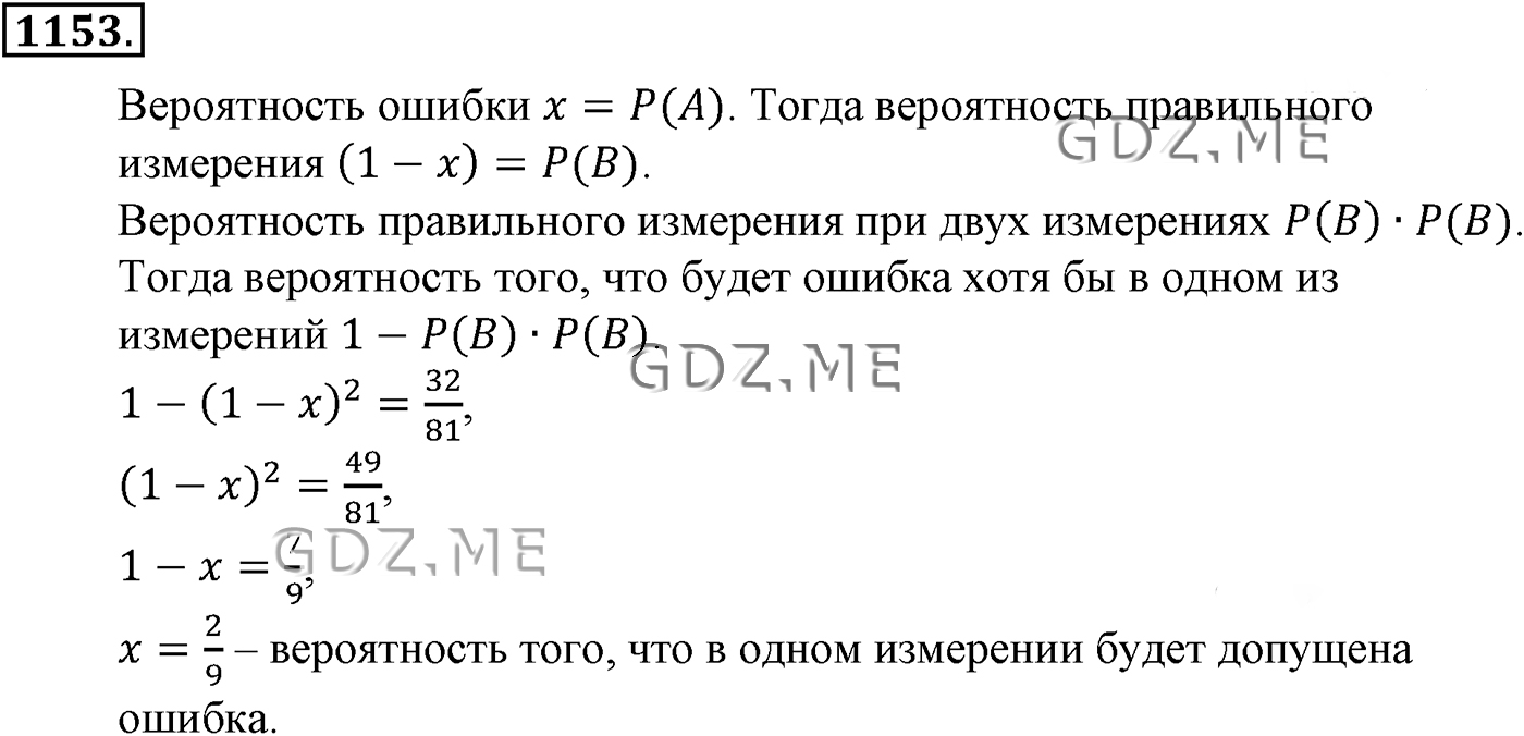 Подробный вариант решения из решебника (ГДЗ): Задание номер 1153 (Глава 12 Элементы теории вероятностей) по предмету Алгебра, за 10 класс, авторы учебника Алимов, Колягин.