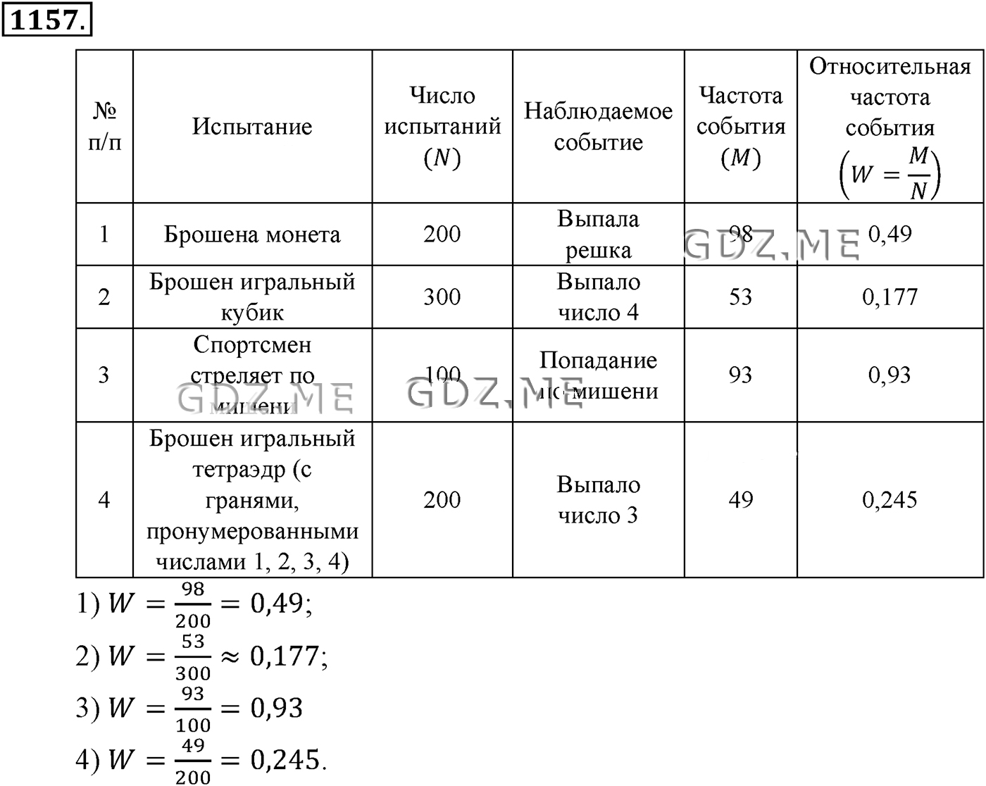Подробный вариант решения из решебника (ГДЗ): Задание номер 1157 (Глава 12 Элементы теории вероятностей) по предмету Алгебра, за 10 класс, авторы учебника Алимов, Колягин.