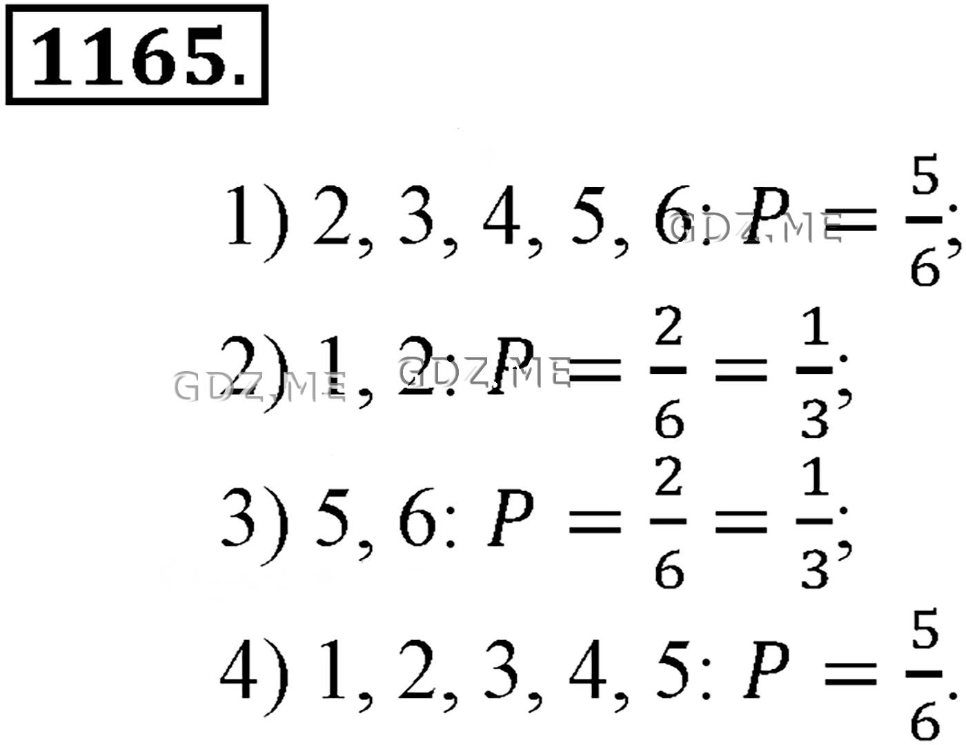 Подробный вариант решения из решебника (ГДЗ): Задание номер 1165 (Глава 12 Элементы теории вероятностей) по предмету Алгебра, за 10 класс, авторы учебника Алимов, Колягин.
