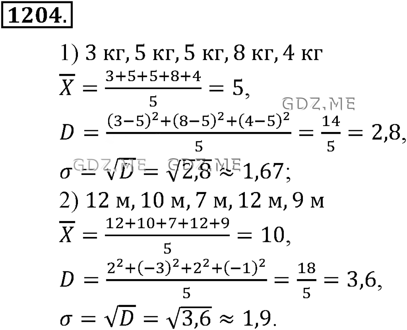 ГДЗ по Алгебре за 10 и 11 класс Алимов, Колягин. Ответ на Задание номер 1204 (Глава 13 Статистика)