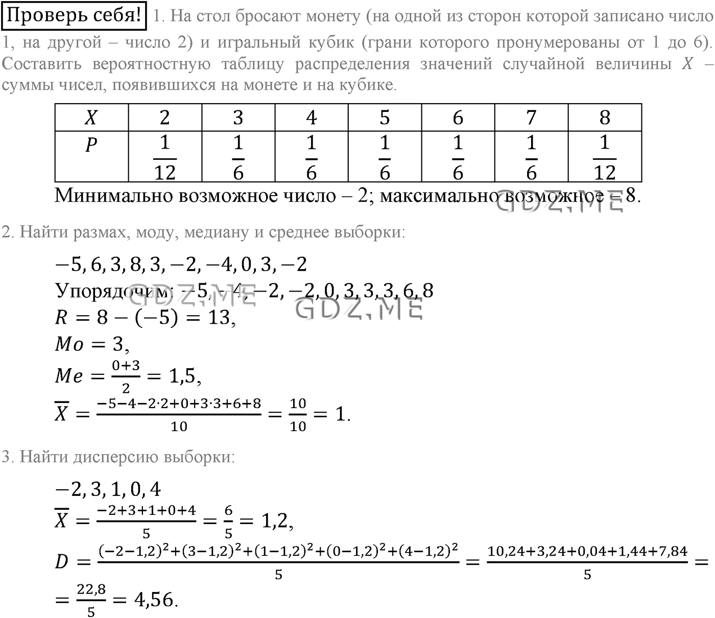 ГДЗ по Алгебре за 10 и 11 класс Алимов, Колягин. Ответ на Задание номер Проверь себя (Глава 13 Статистика)