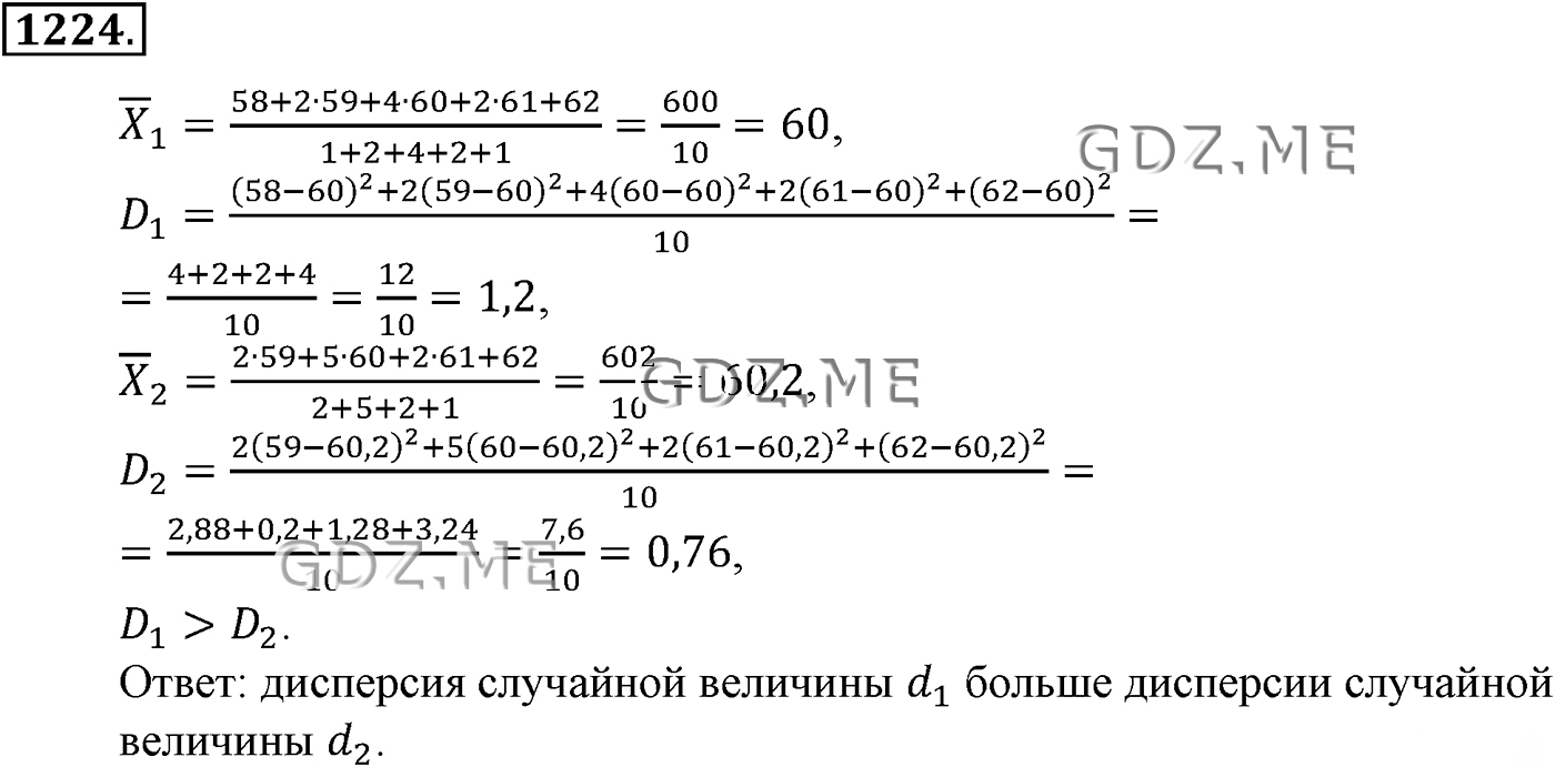 ГДЗ по Алгебре за 10 и 11 класс Алимов, Колягин. Ответ на Задание номер 1224 (Глава 13 Статистика)