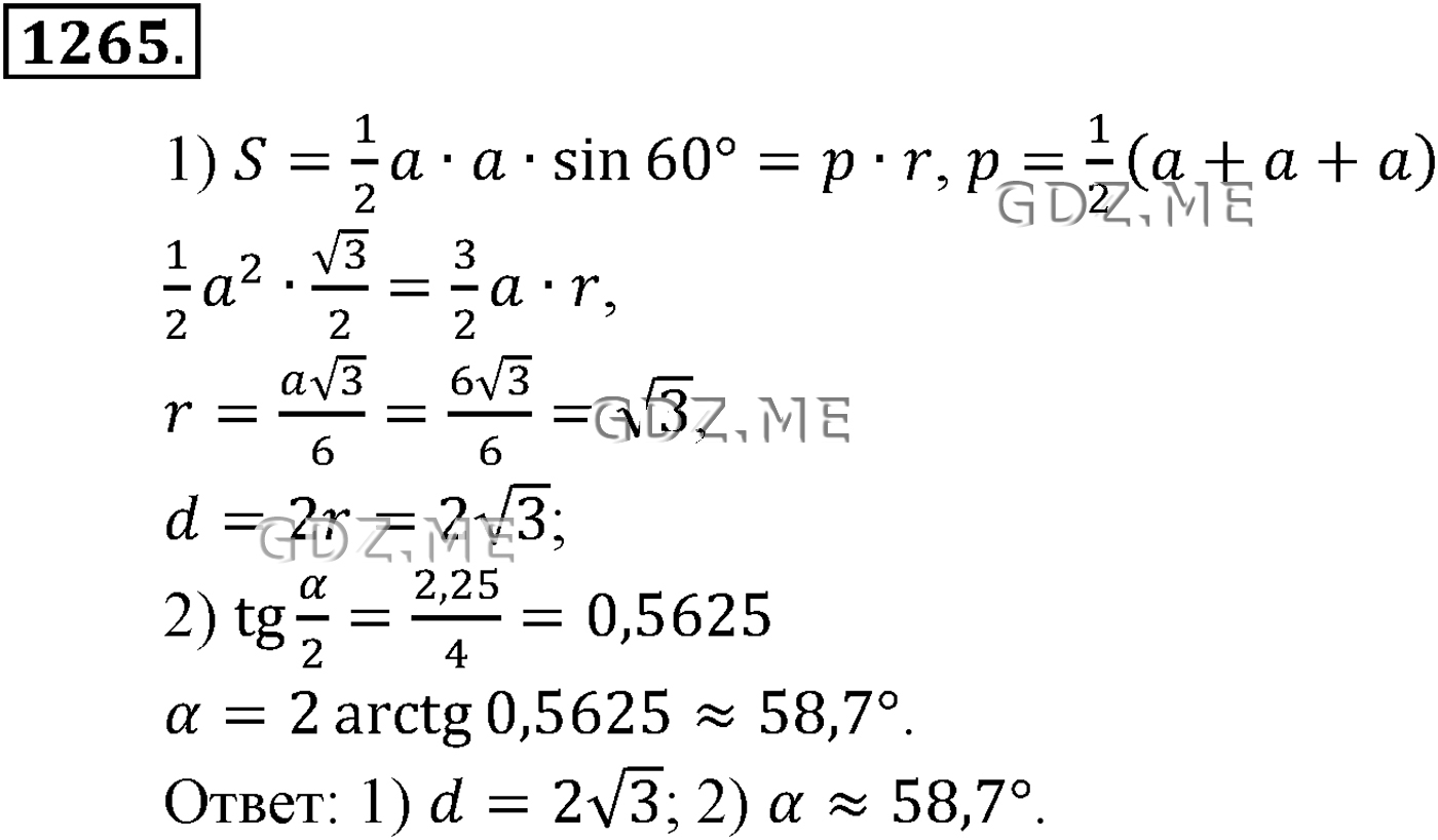 ГДЗ по Алгебре за 10 и 11 класс Алимов, Колягин. Ответ на Упражнение номер 1265 (Глава 14 Упражнения для итогового повторения)