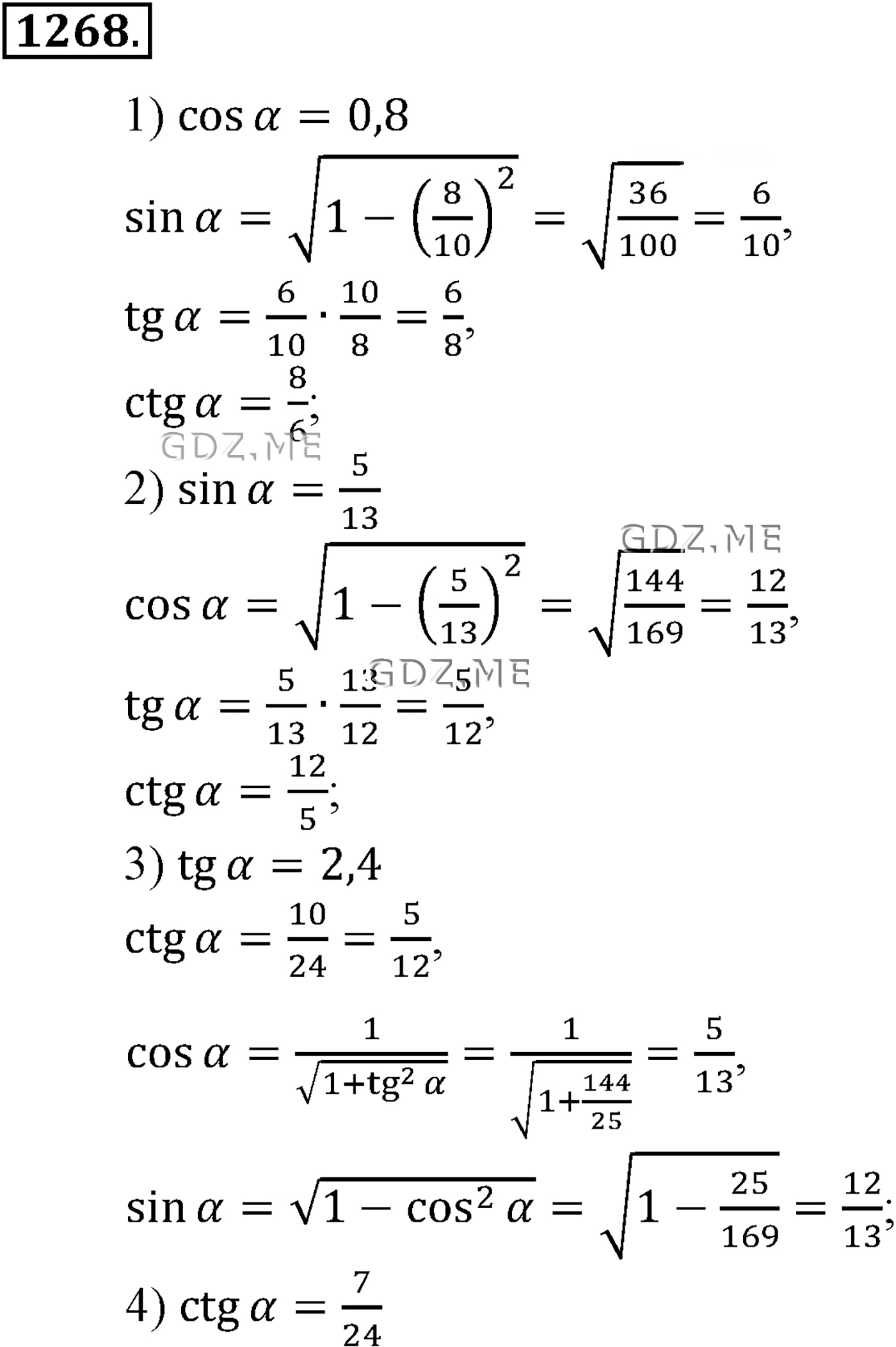 ГДЗ по Алгебре за 10 и 11 класс Алимов, Колягин. Ответ на Упражнение номер 1268.1 (Глава 14 Упражнения для итогового повторения)