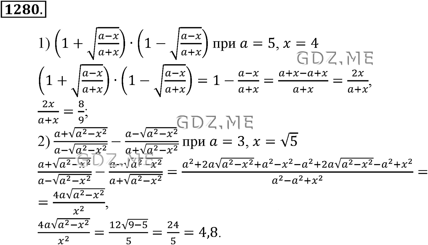 Подробный вариант решения из решебника (ГДЗ): Упражнение номер 1280 (Глава 14 Упражнения для итогового повторения) по предмету Алгебра, за 10 класс, авторы учебника Алимов, Колягин.