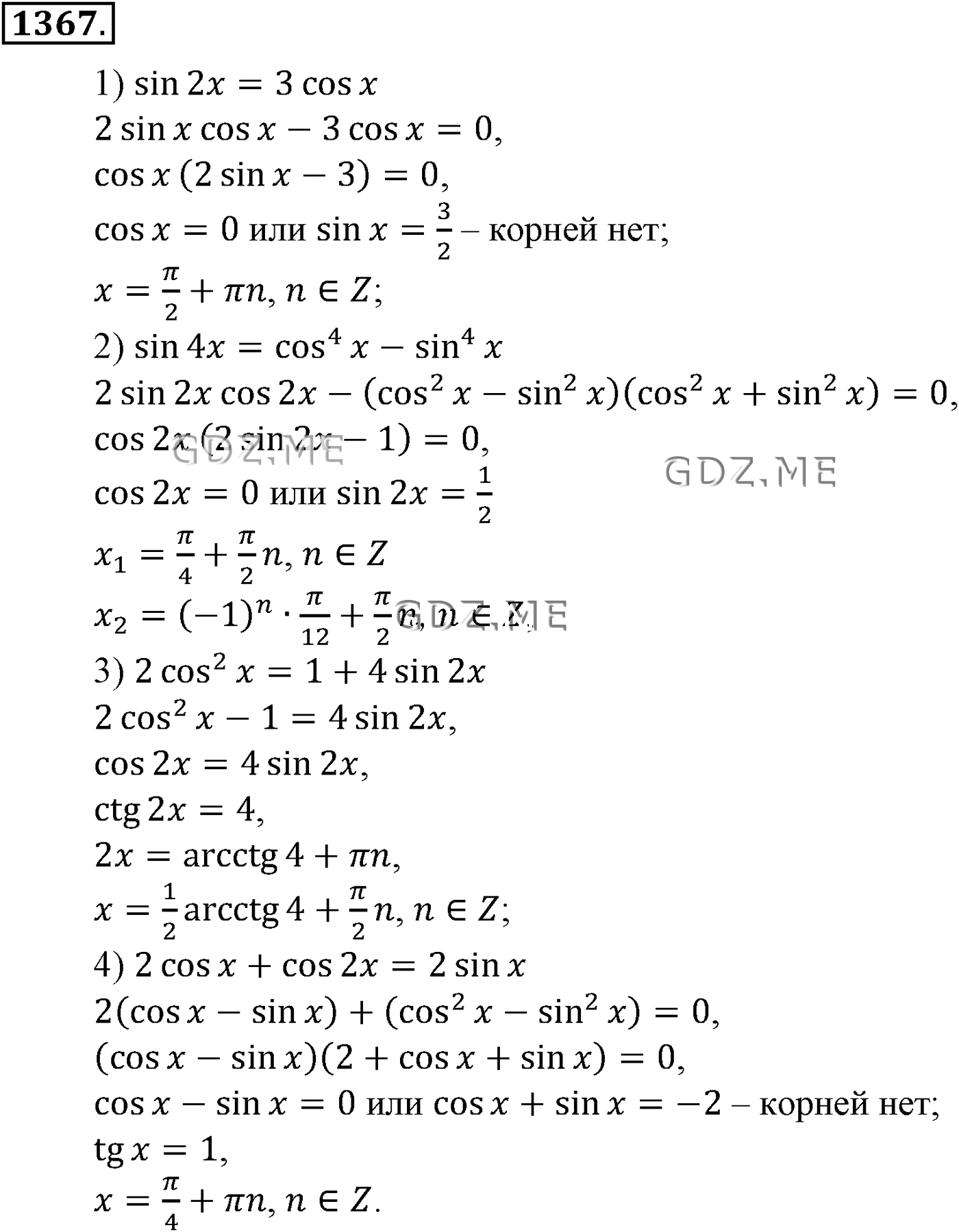 Подробный вариант решения из решебника (ГДЗ): Упражнение номер 1367 (Глава 14 Упражнения для итогового повторения) по предмету Алгебра, за 10 класс, авторы учебника Алимов, Колягин.