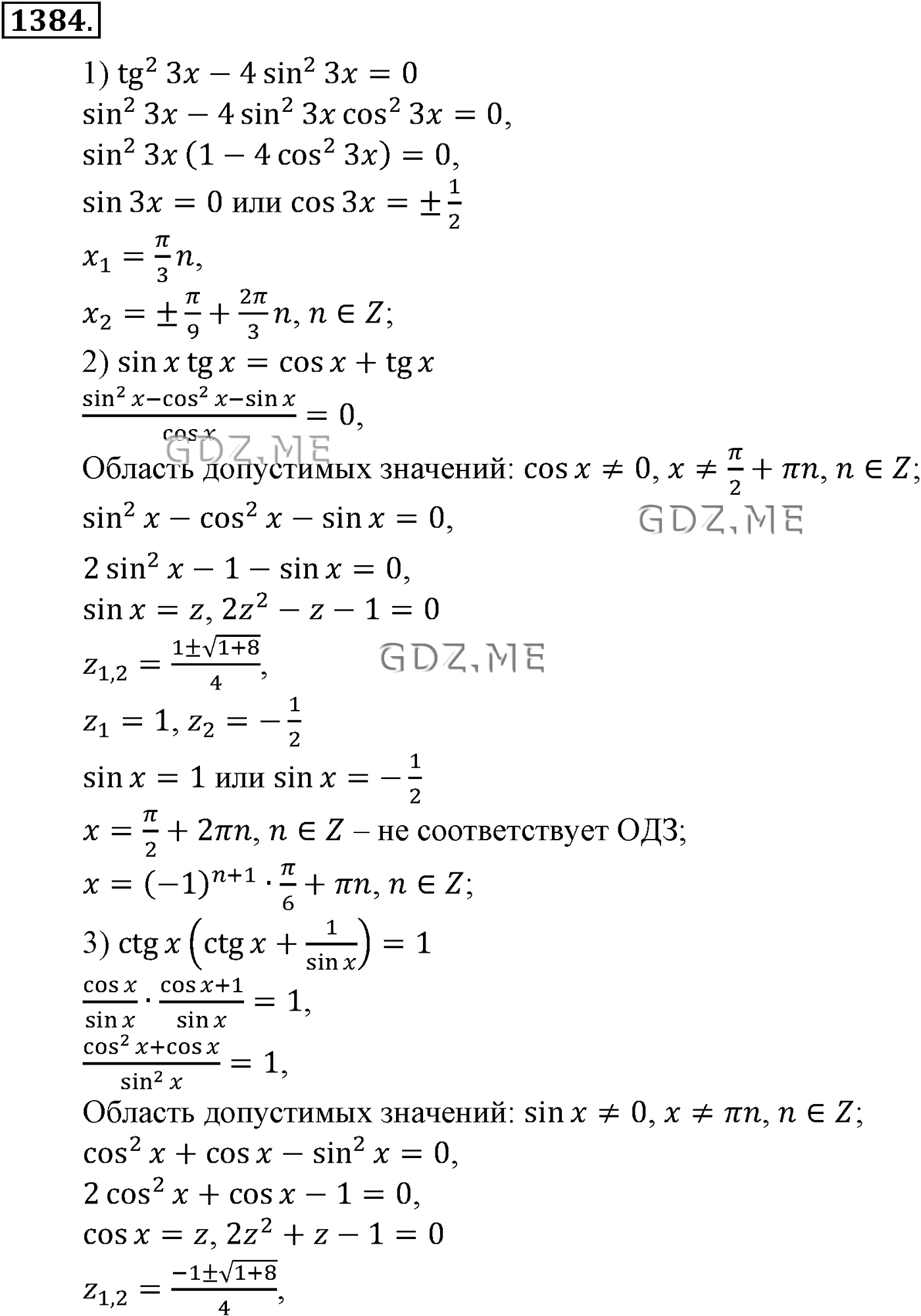 ГДЗ по Алгебре за 10 и 11 класс Алимов, Колягин. Ответ на Упражнение номер 1384.1 (Глава 14 Упражнения для итогового повторения)
