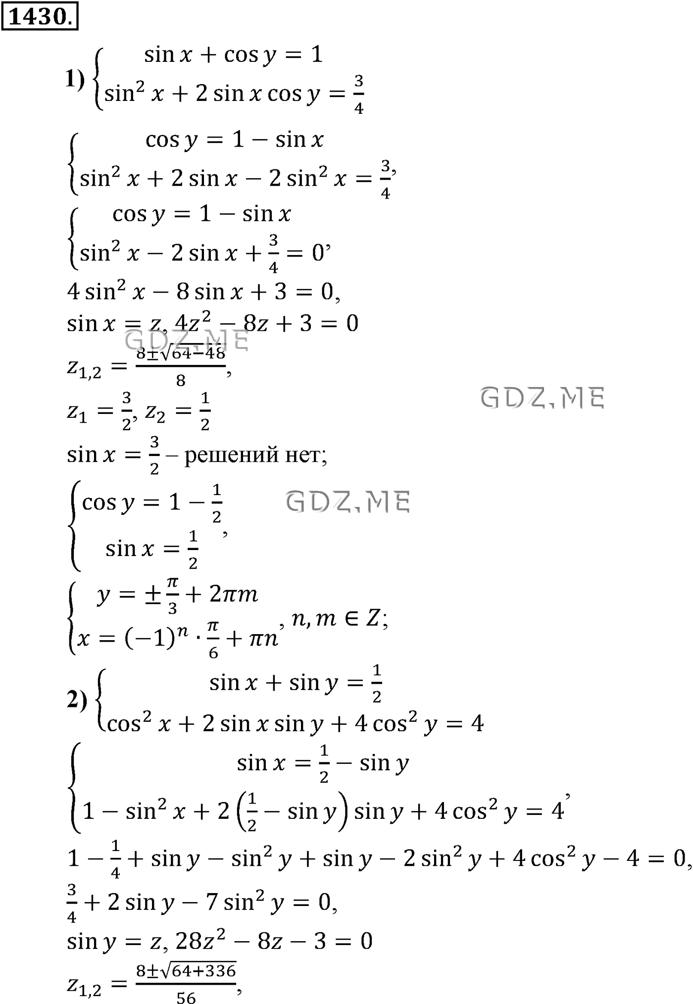 ГДЗ по Алгебре за 10 и 11 класс Алимов, Колягин. Ответ на Упражнение номер 1430.1 (Глава 14 Упражнения для итогового повторения)