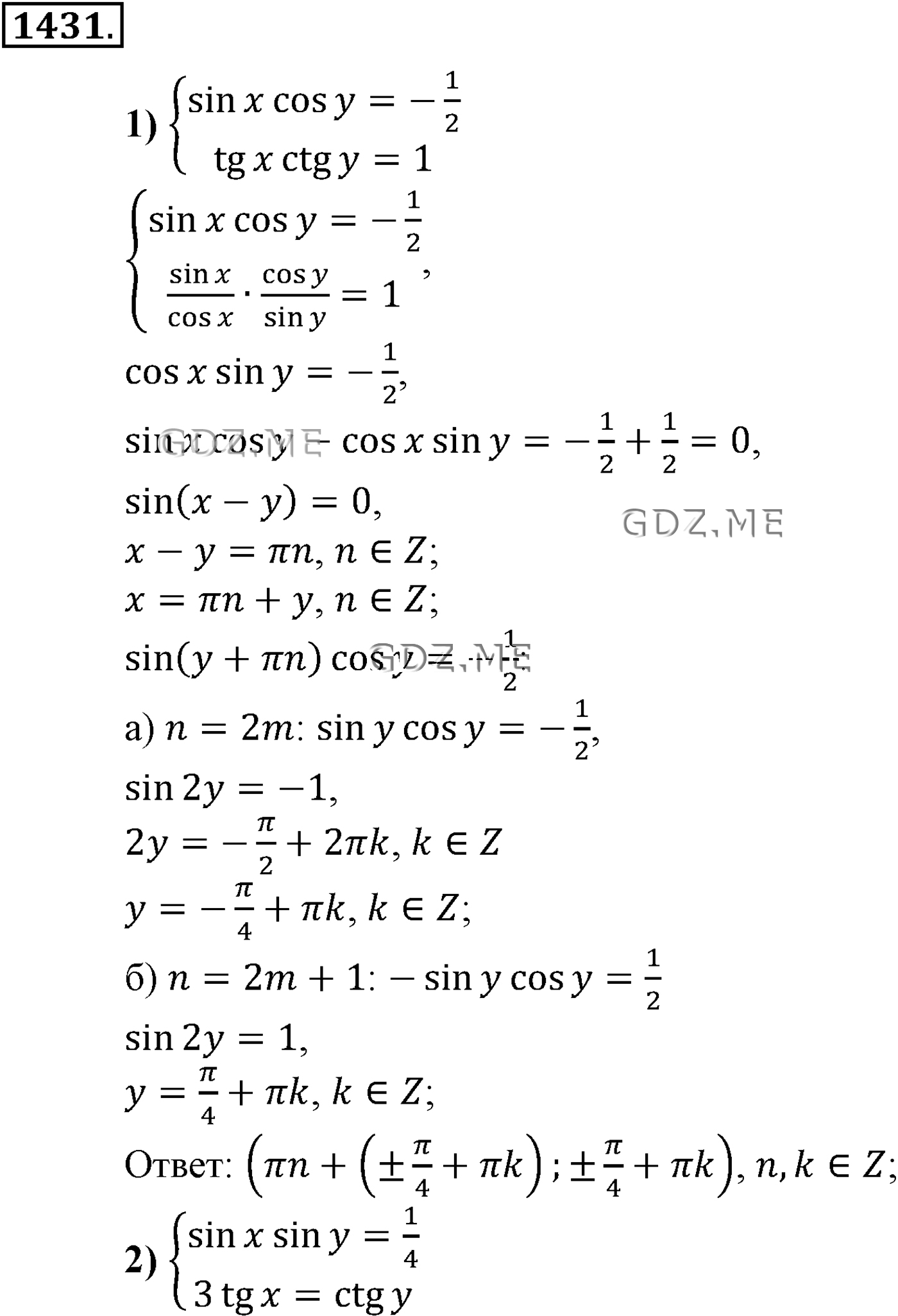 ГДЗ по Алгебре за 10 и 11 класс Алимов, Колягин. Ответ на Упражнение номер 1431.1 (Глава 14 Упражнения для итогового повторения)