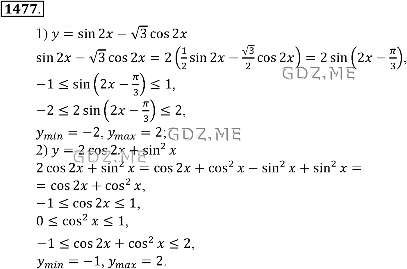 ГДЗ по Алгебре за 10 и 11 класс Алимов, Колягин. Ответ на Упражнение номер 1477 (Глава 14 Упражнения для итогового повторения)
