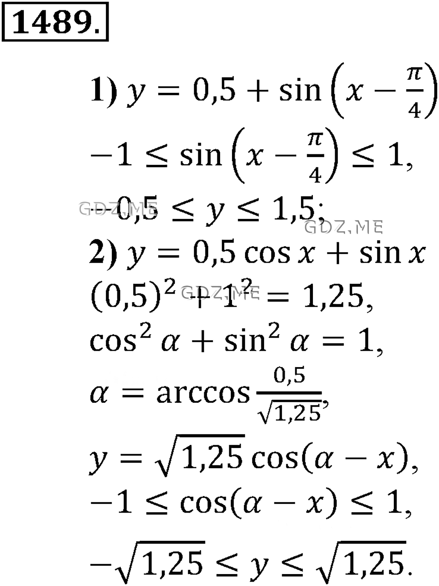 Подробный вариант решения из решебника (ГДЗ): Упражнение номер 1489 (Глава 14 Упражнения для итогового повторения) по предмету Алгебра, за 10 класс, авторы учебника Алимов, Колягин.