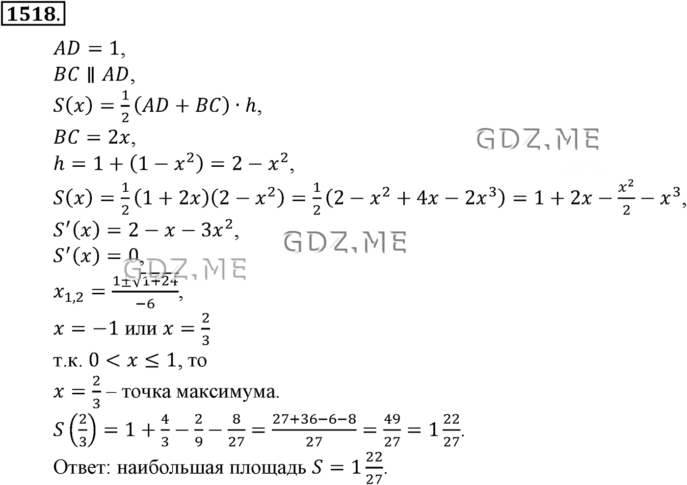 ГДЗ по Алгебре за 10 и 11 класс Алимов, Колягин. Ответ на Упражнение номер 1518 (Глава 14 Упражнения для итогового повторения)