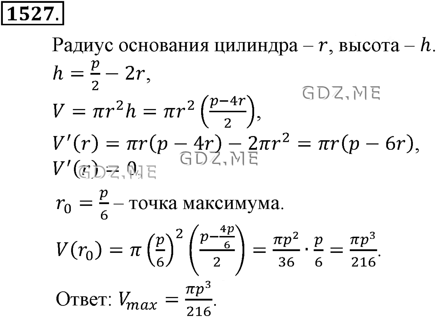 ГДЗ по Алгебре за 10 и 11 класс Алимов, Колягин. Ответ на Упражнение номер 1527 (Глава 14 Упражнения для итогового повторения)