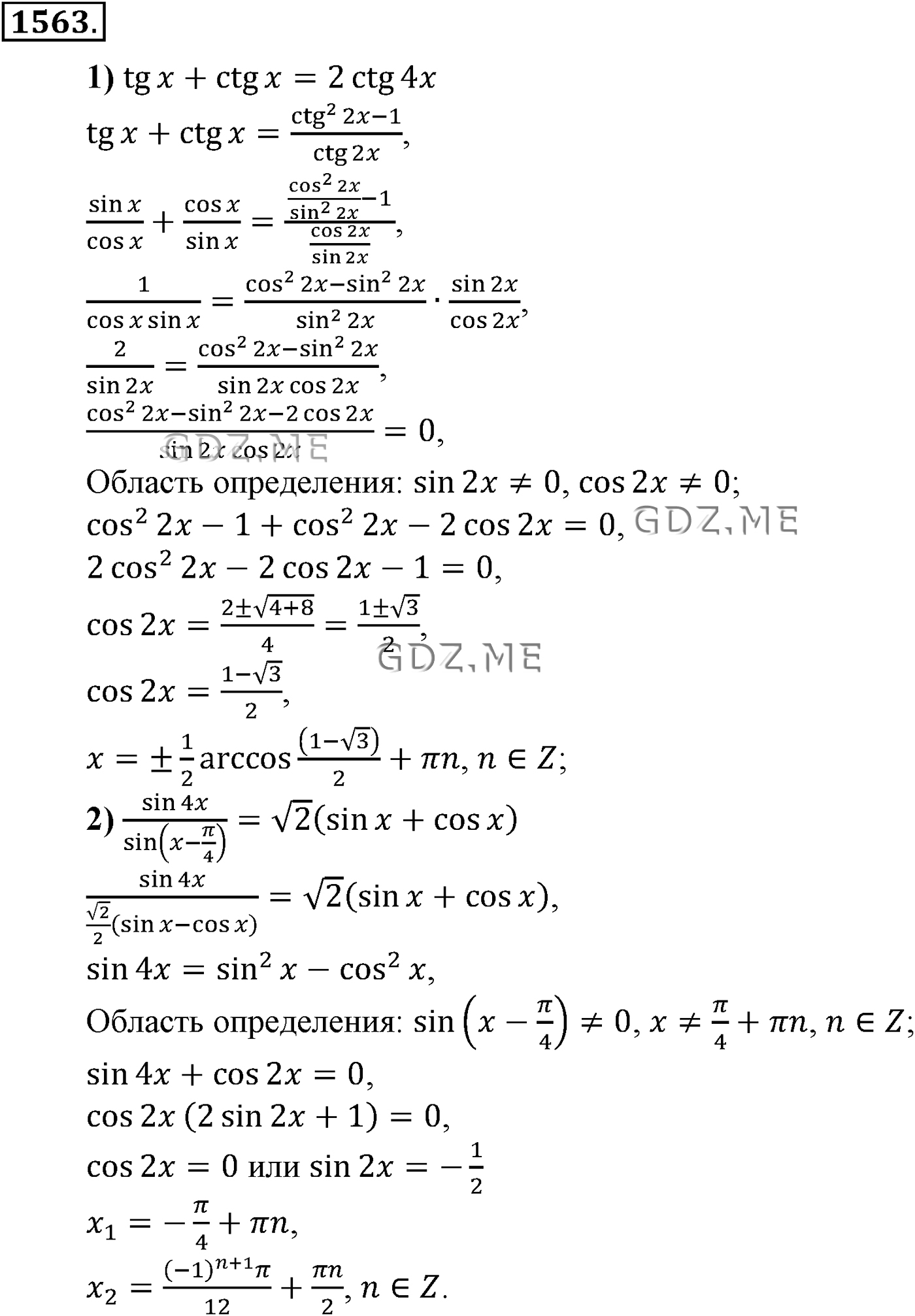 Подробный вариант решения из решебника (ГДЗ): Задание номер 1563 (Глава 15 Задачи для внеклассной работы) по предмету Алгебра, за 10 класс, авторы учебника Алимов, Колягин.